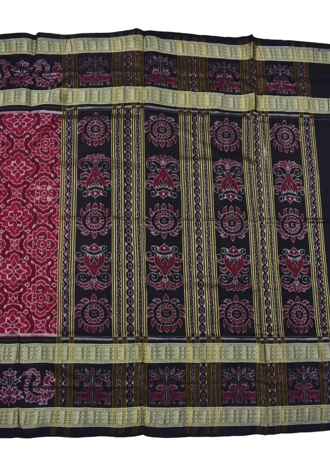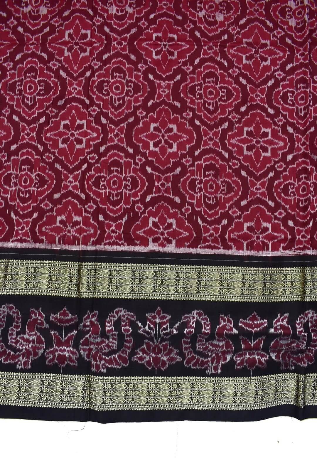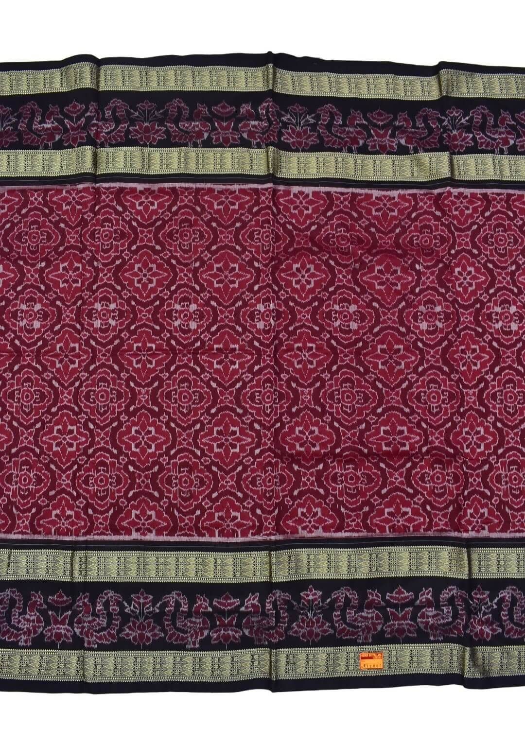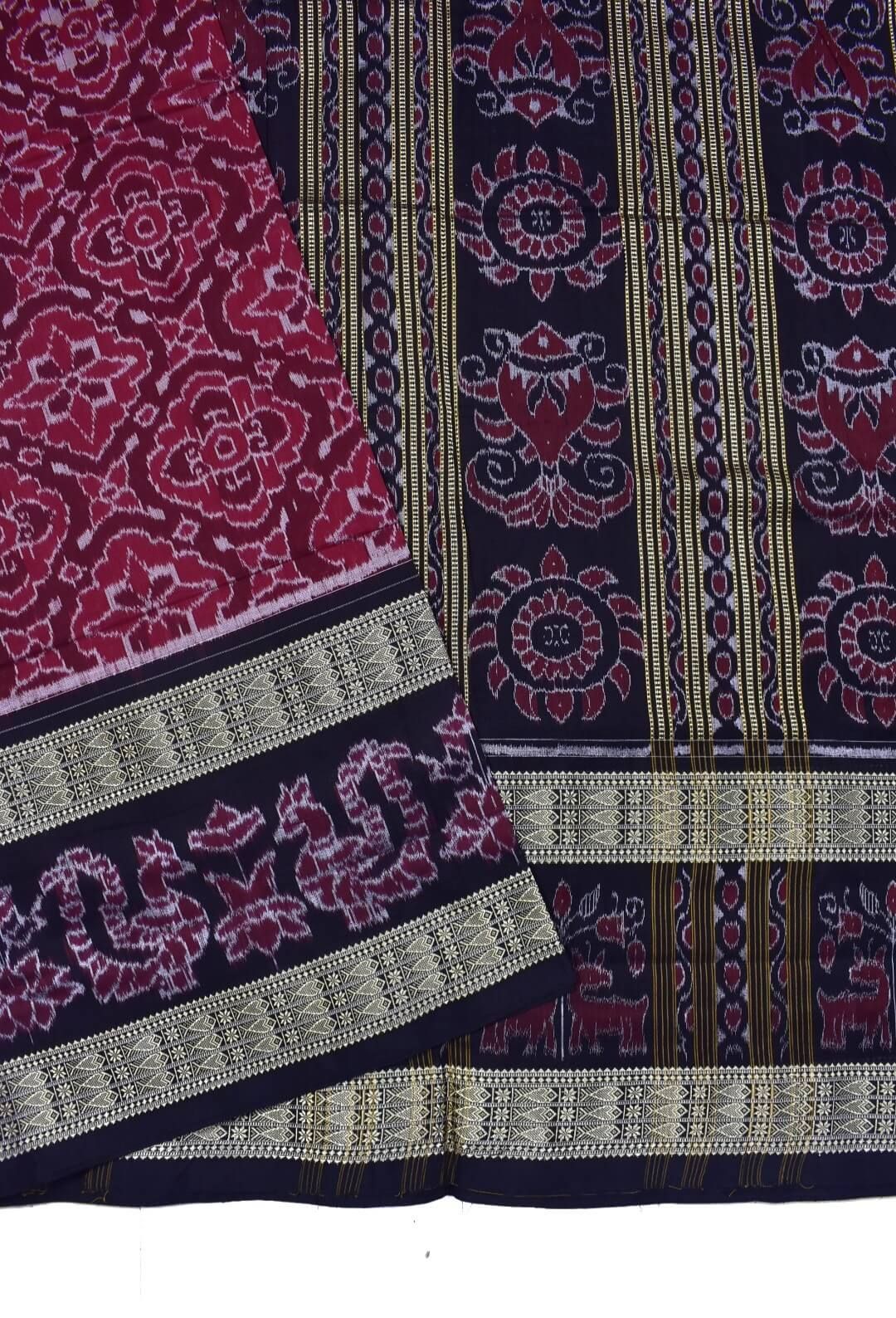 Maroon Colour Double Border Sambalpuri Handloom Cotton Saree