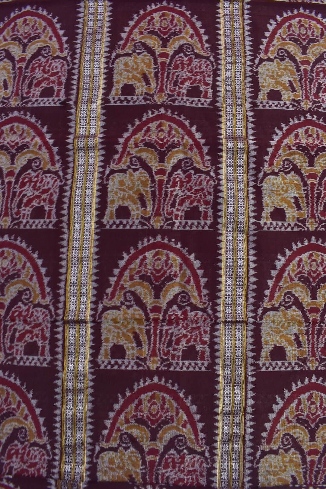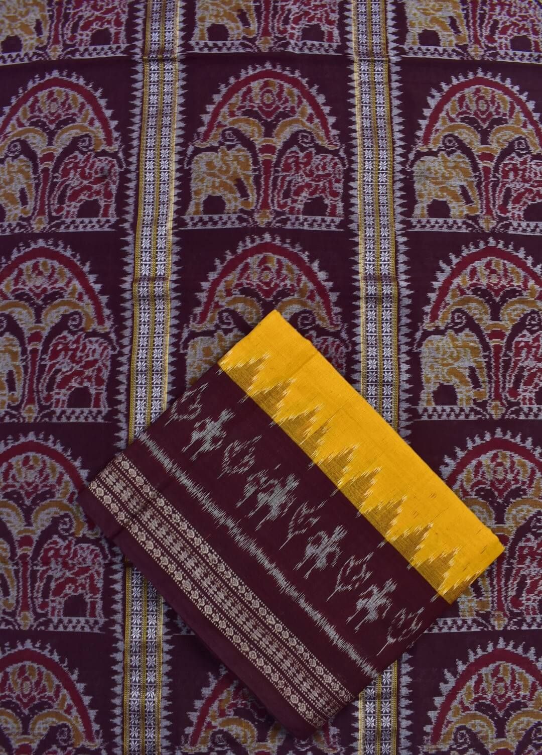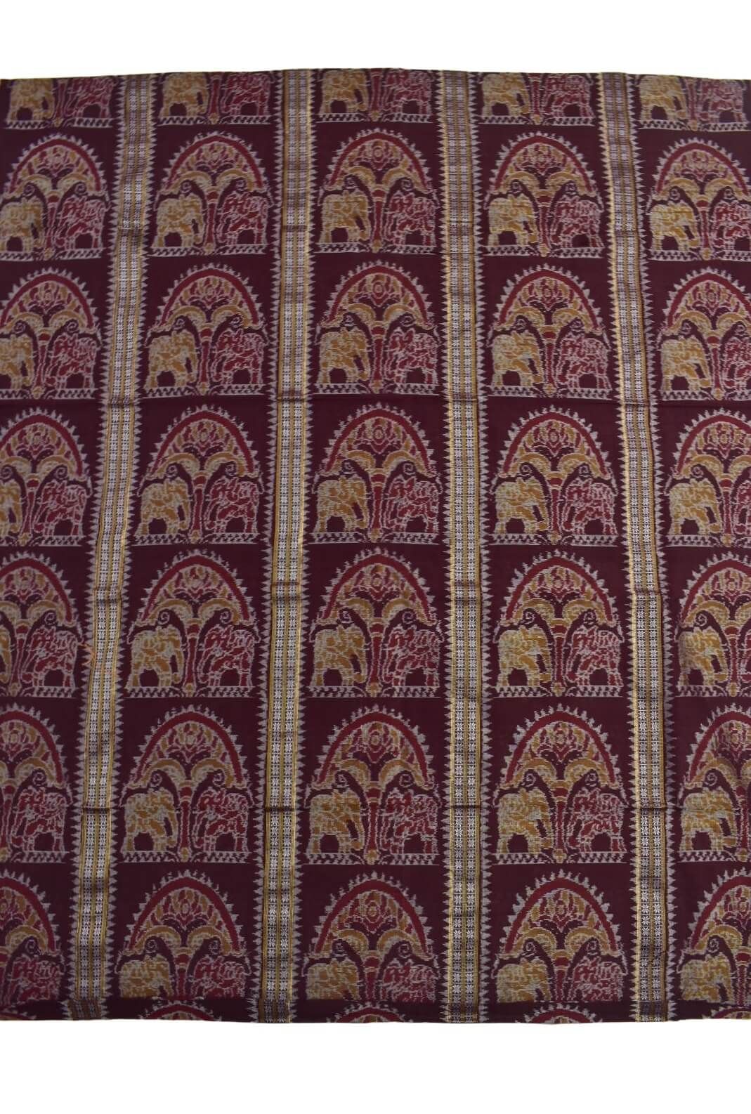 Maroon Colour Peacock Design Sambalpuri Handloom Cotton Dress Materials