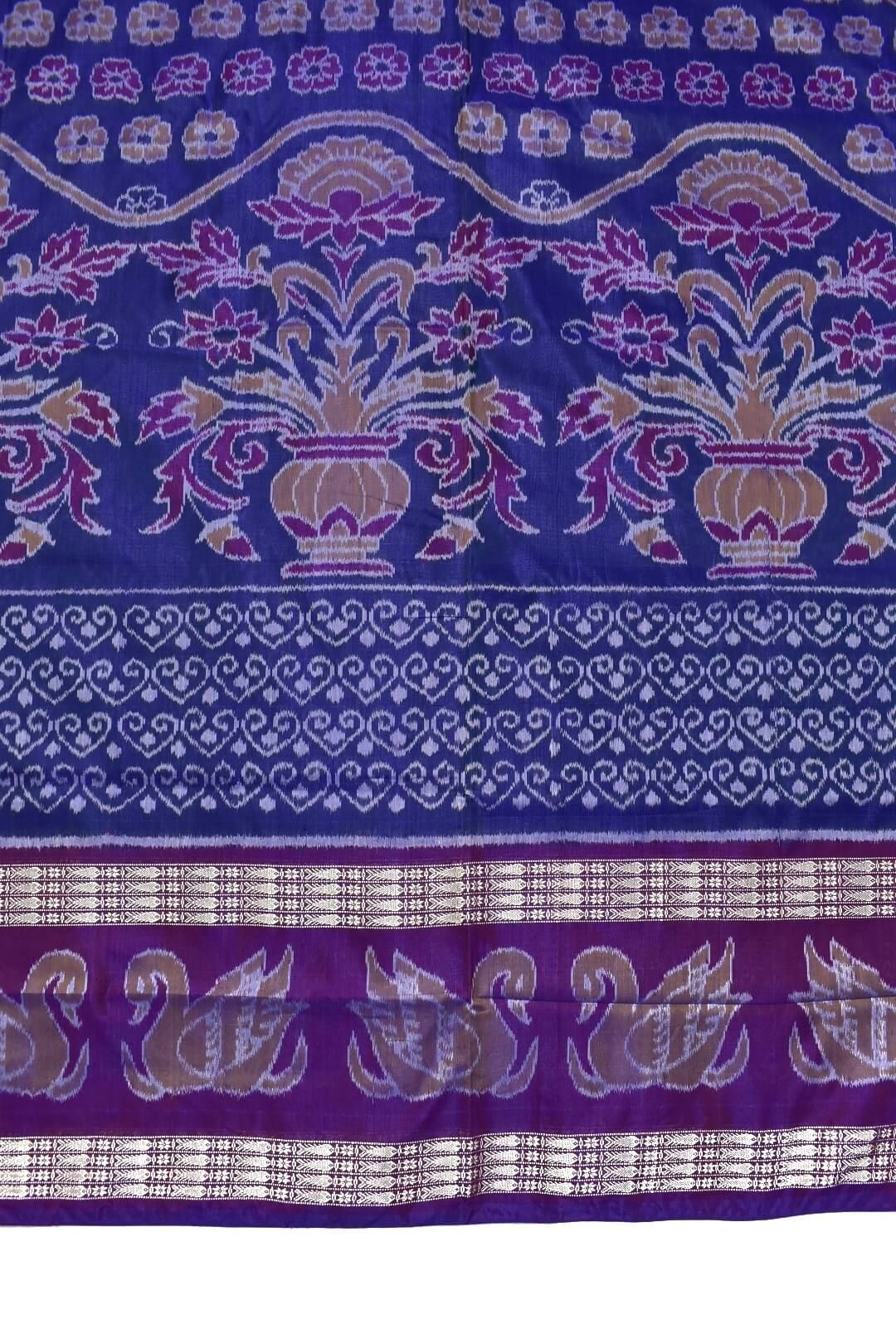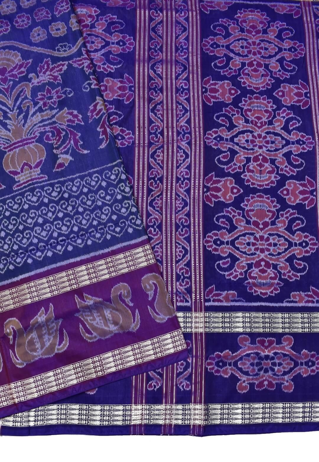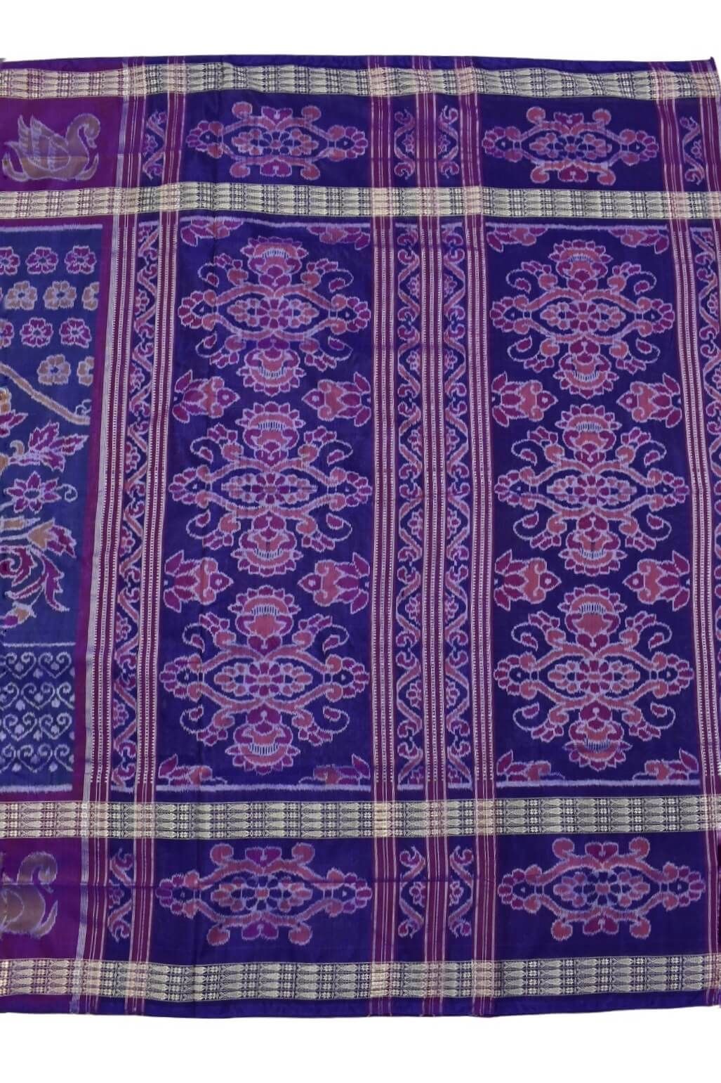 Navy Blue Colour Double Border Sambalpuri Handloom Cotton/Silk Mix Saree