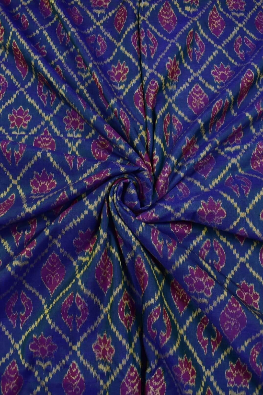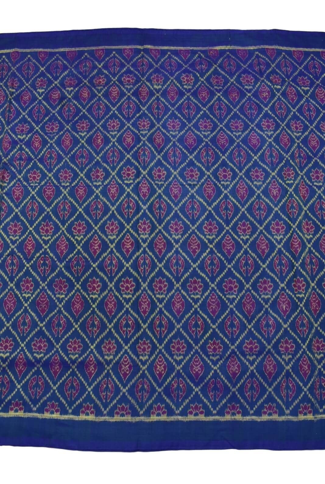Navy Blue Colour Lotus Design Sambalpuri Handloom Cotton Fabrics