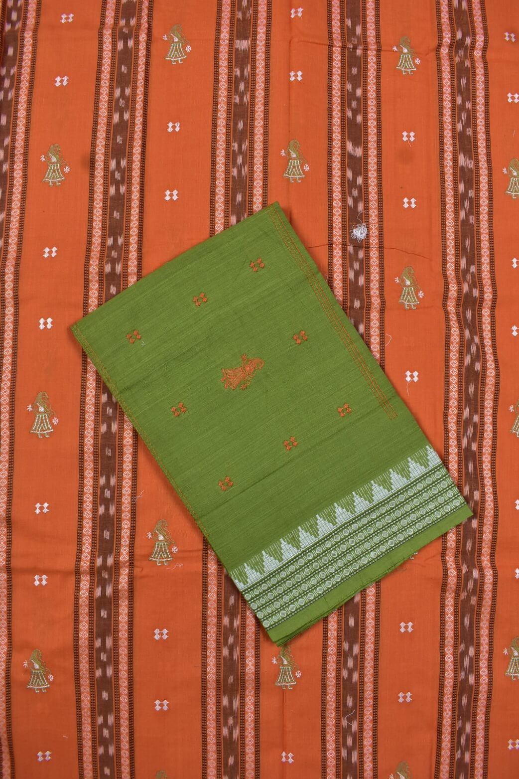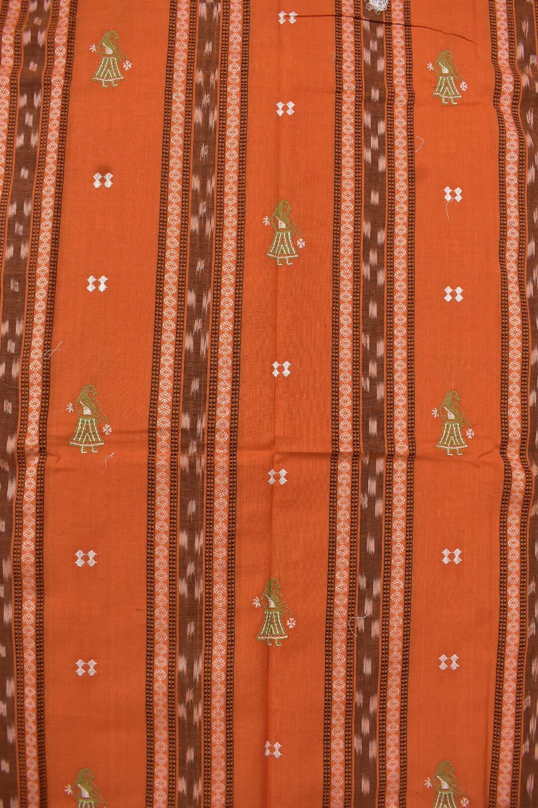 Orange Colour Doll Design Sambalpuri Handloom Cotton Bomkai Dress Material