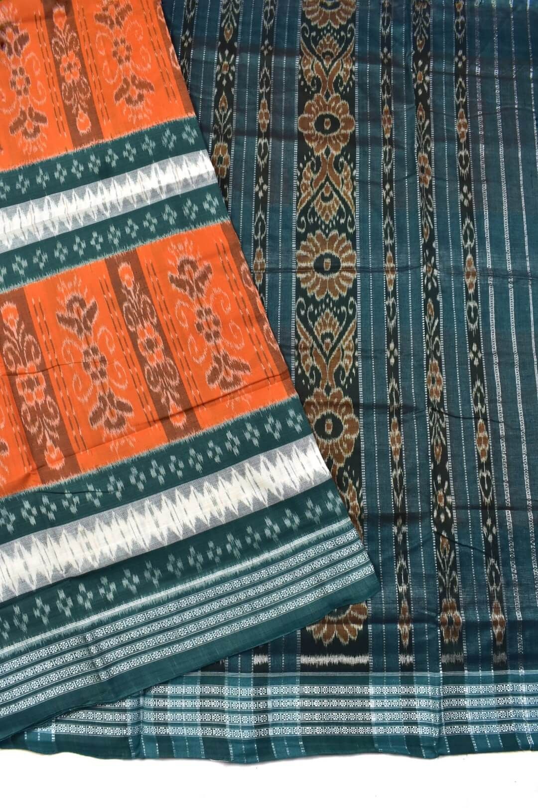 Orange Colour Sambalpuri Handloom Mania Bandha Cotton Saree