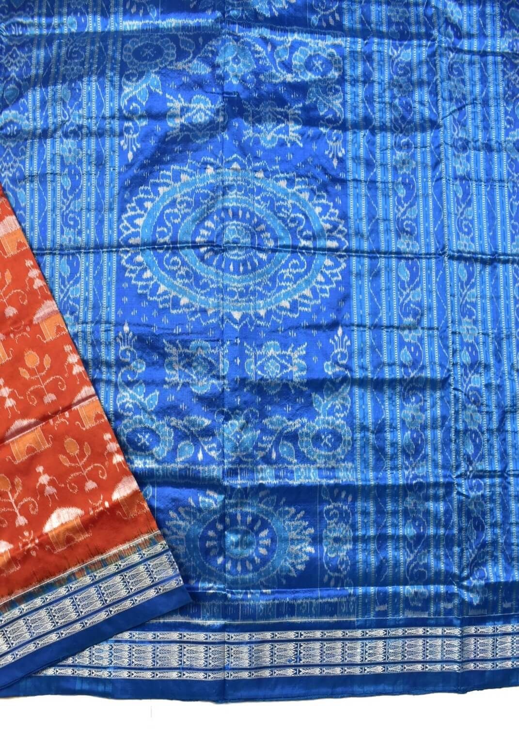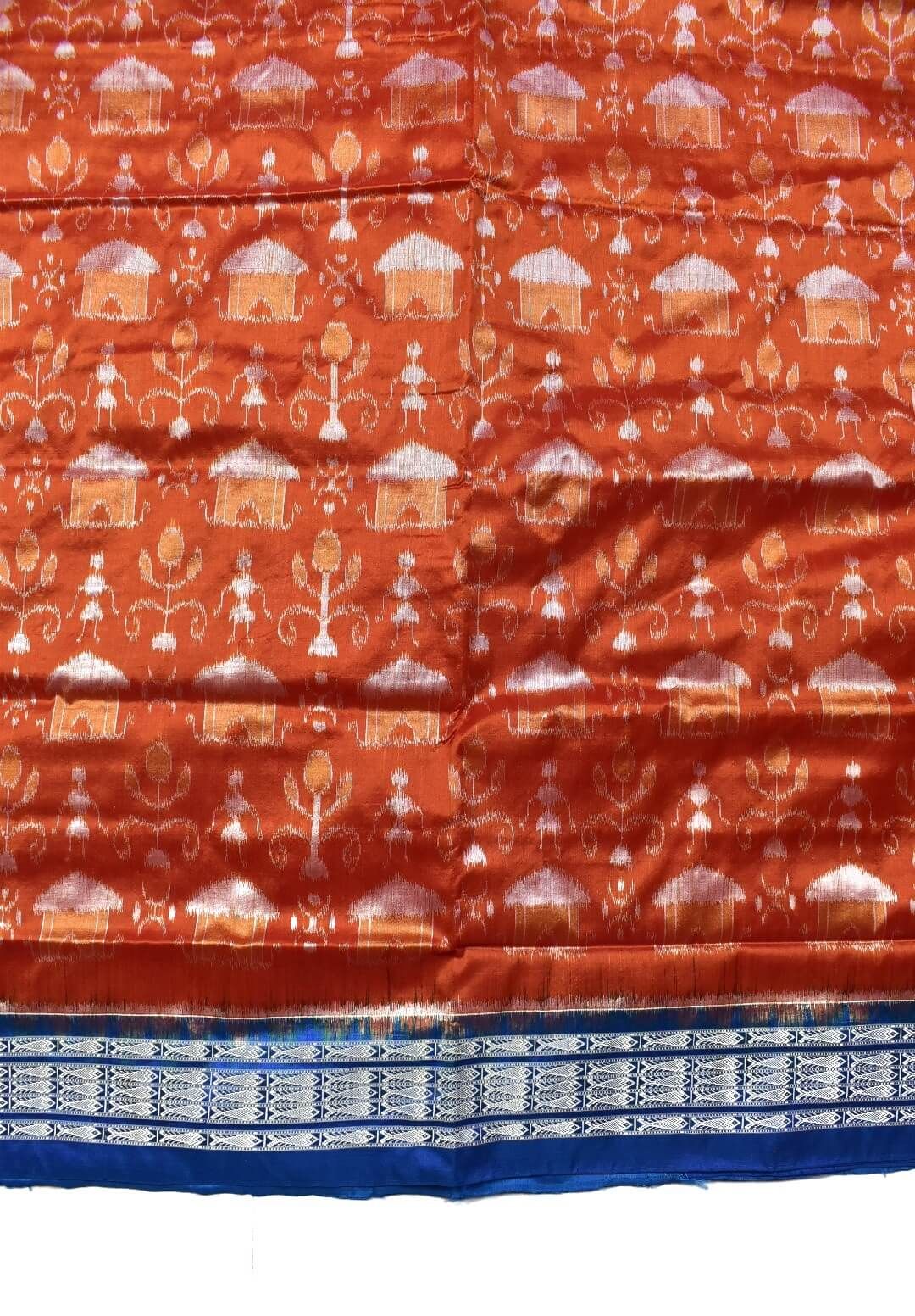 Orange Colour Tribal Design Sambalpuri Handloom Bandha Silk Saree
