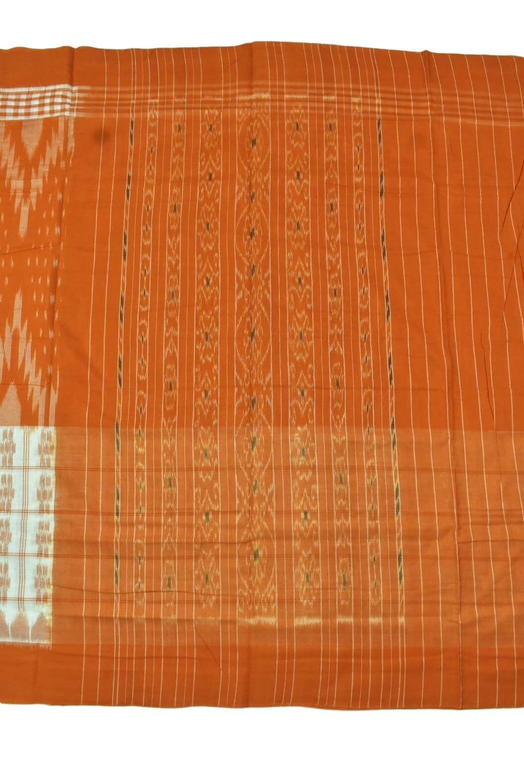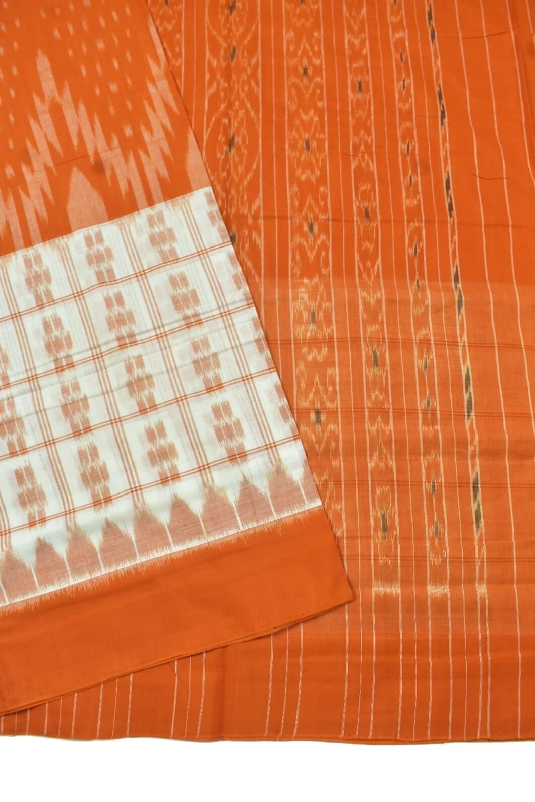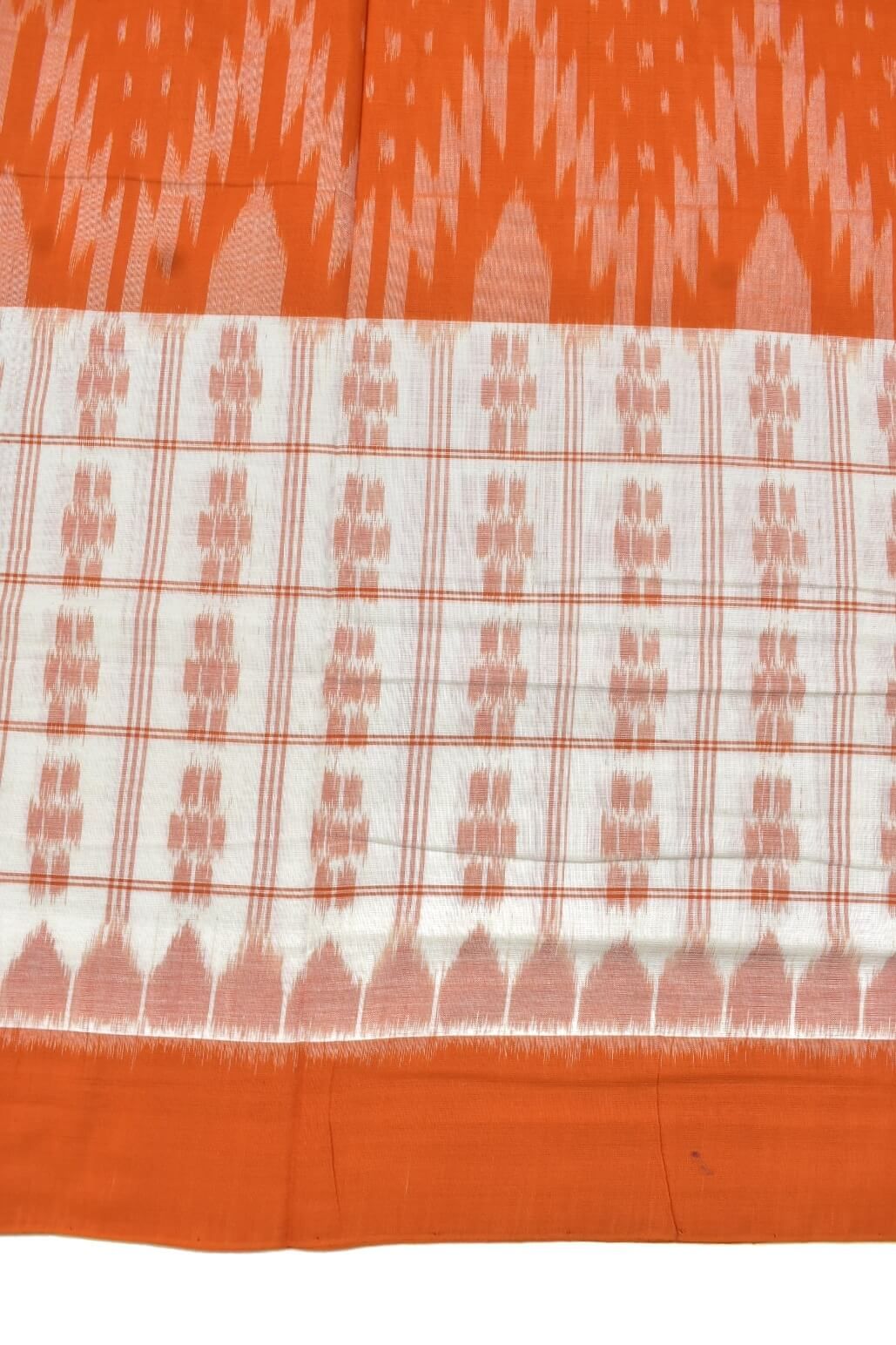 Orange – White Colour Sambalpuri Handloom Mania Bandha Cotton Saree