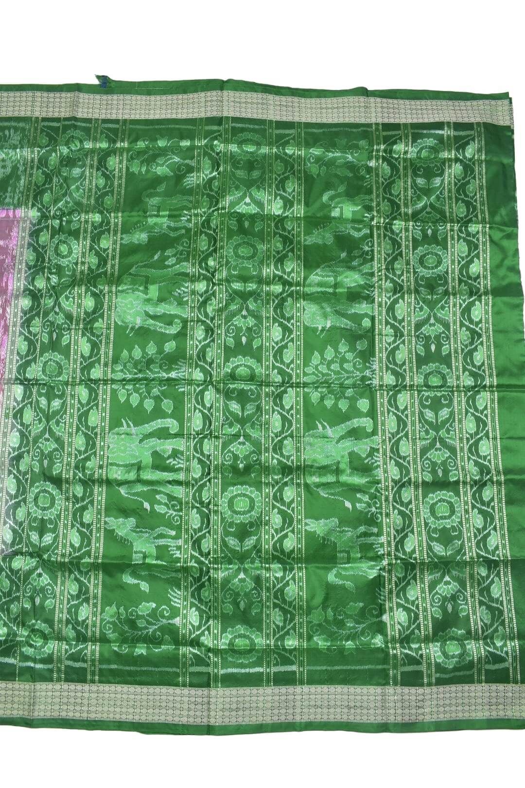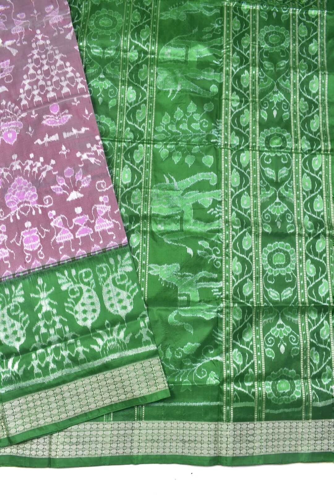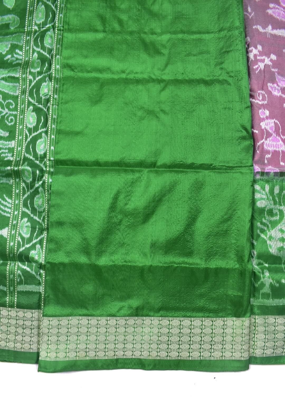 Pitch-Green Combination Sambalpuri Handloom Bandha Silk Saree