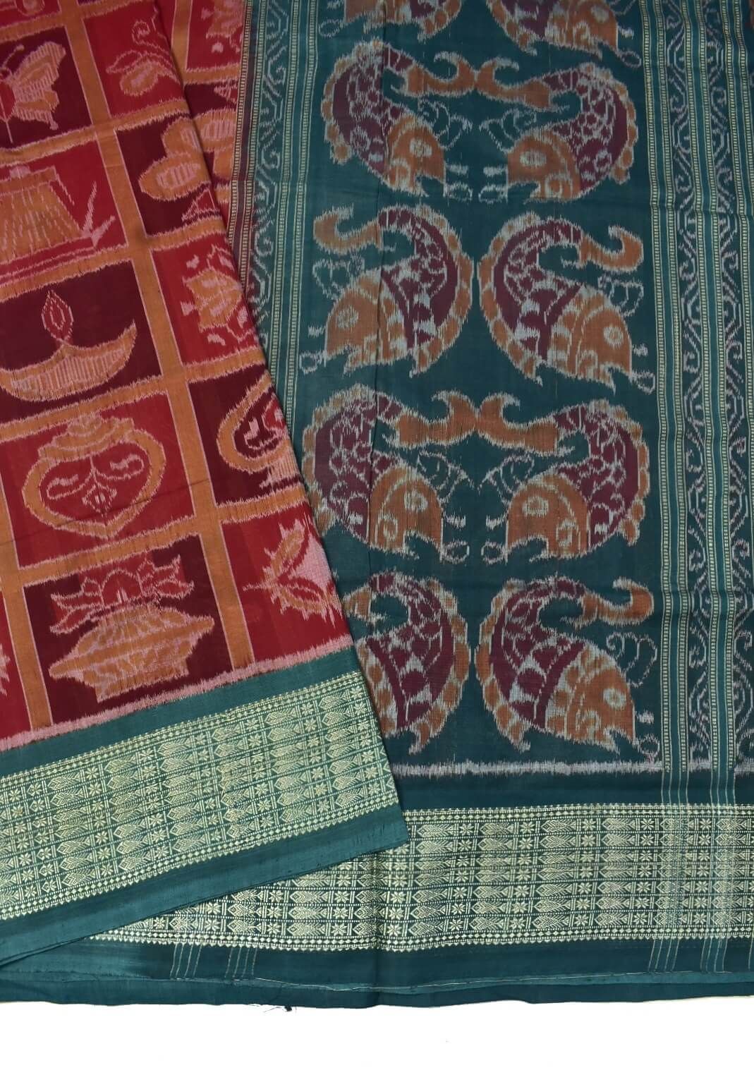 Maroon Colour Sambalpuri Handloom Bandha Cotton Saree