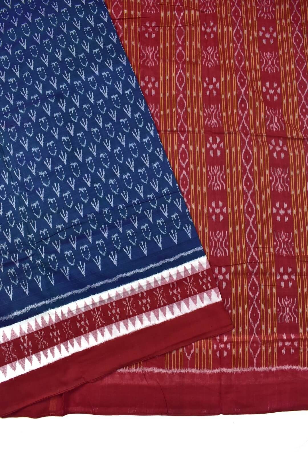 Navy Blue Colour Plane Border Sambalpuri Handloom Cotton Saree