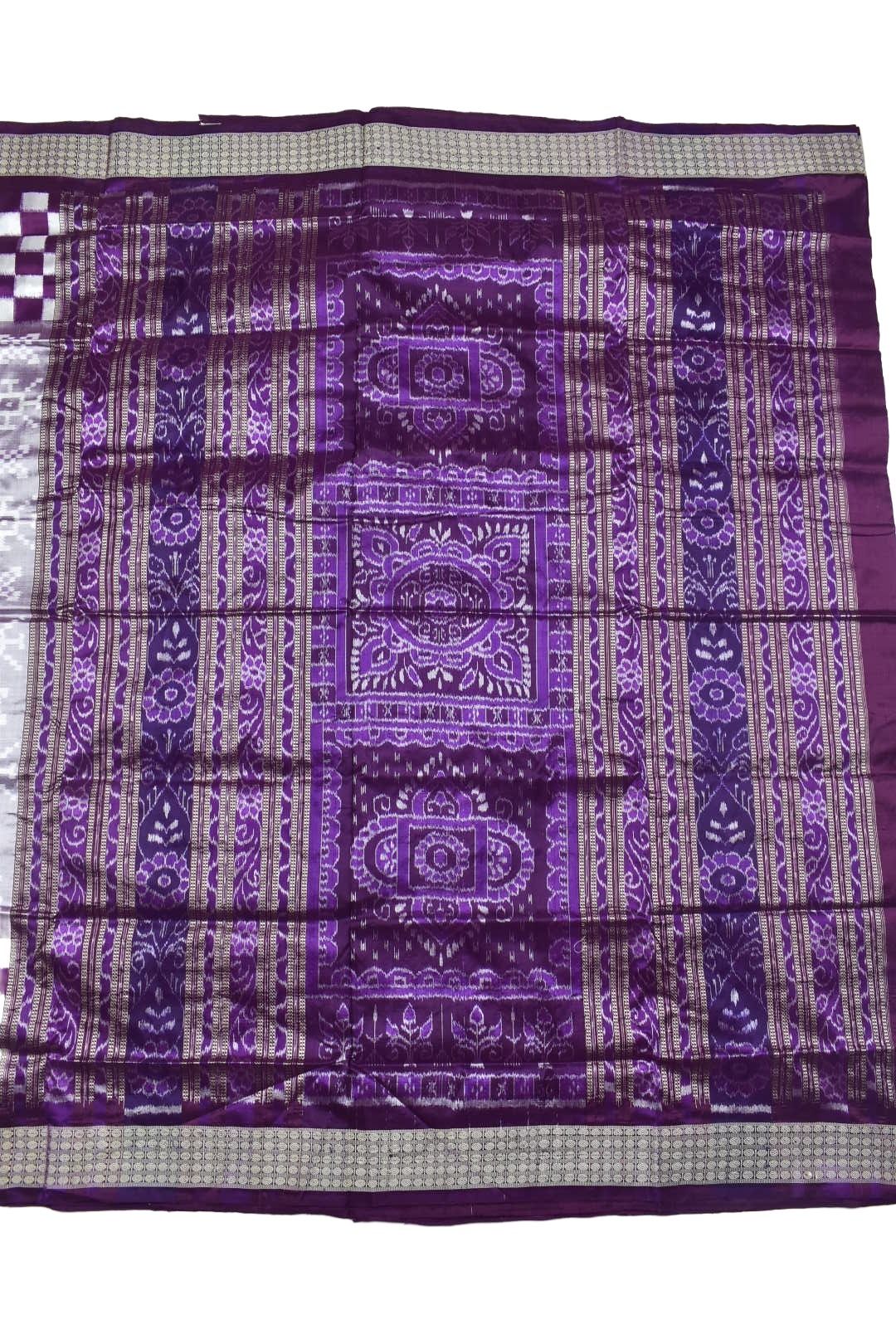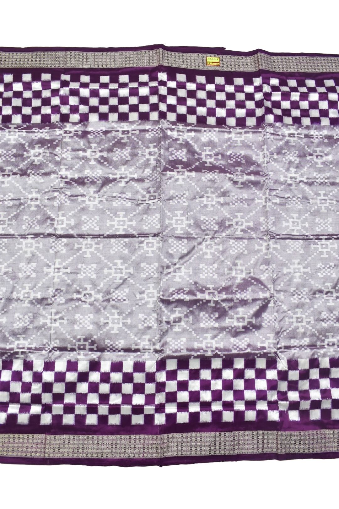 Plum Colour Check Border Sambalpuri Handloom Bandha Silk Saree