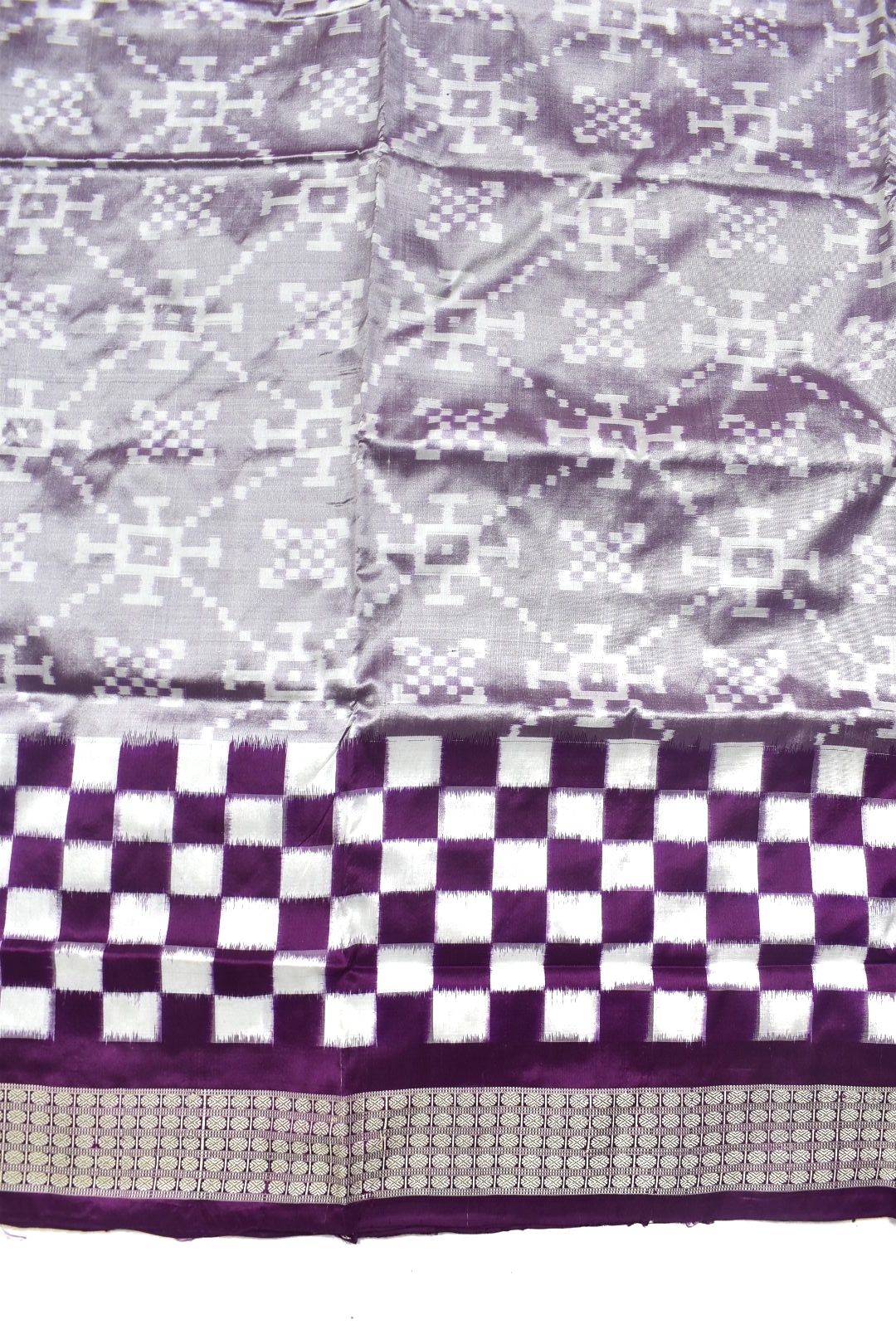 Be the first to review “Plum Colour Check Border Sambalpuri Handloom Bandha Silk Saree”
