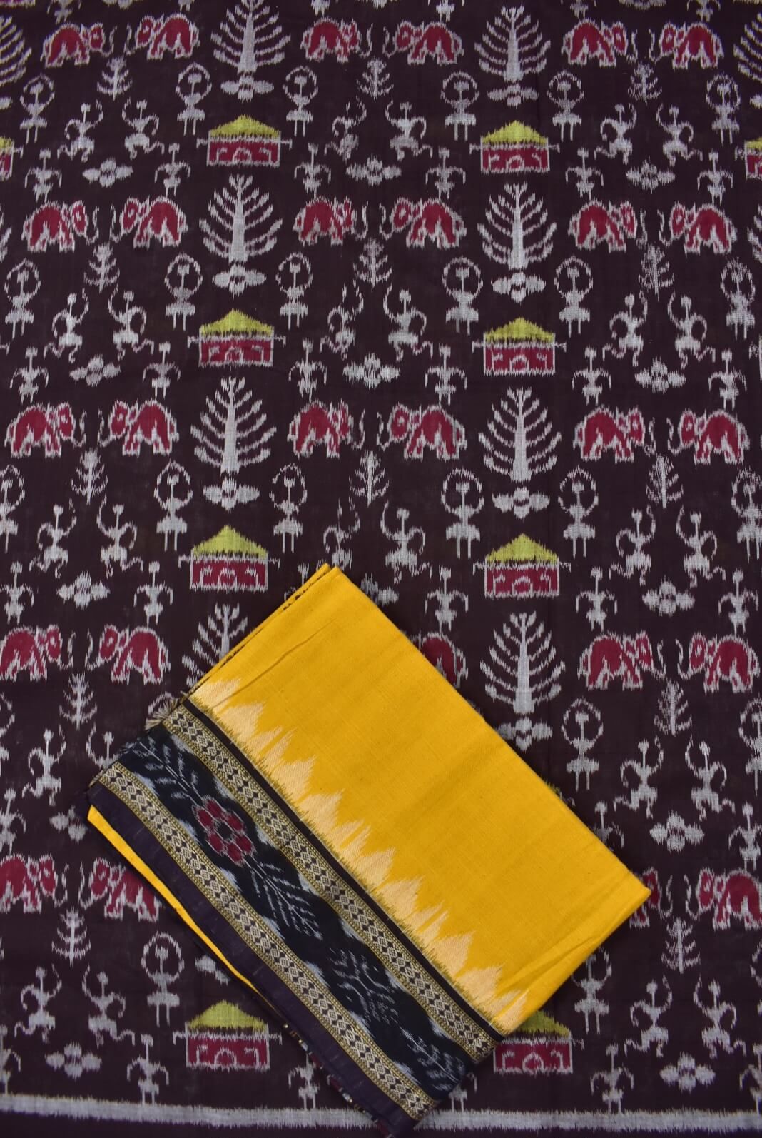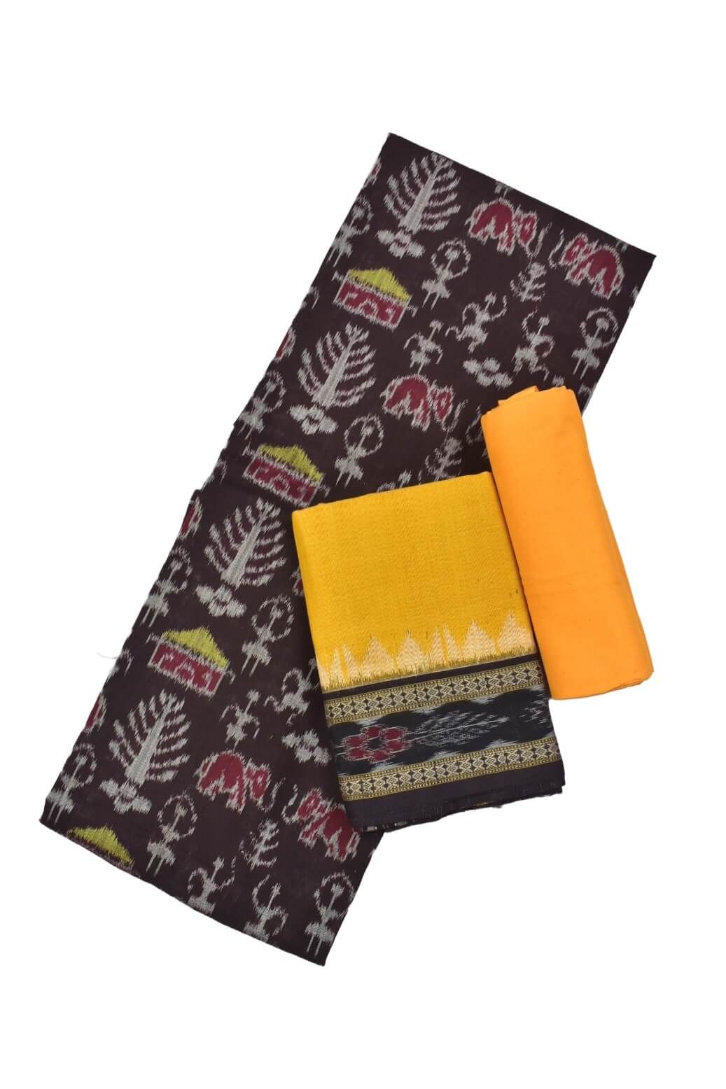 Coffe Colour Tribal Design Sambalpuri Handloom Cotton Dress Material