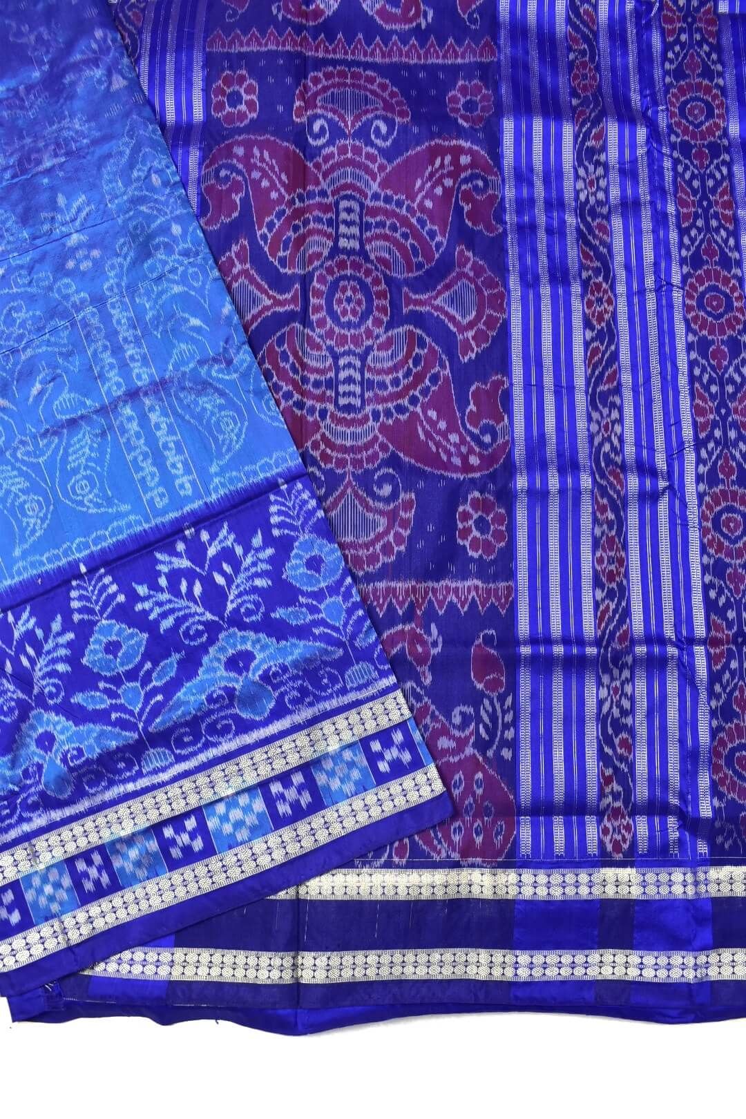 Sky Blue Colour Sambalpuri Handloom Bandha Silk Saree