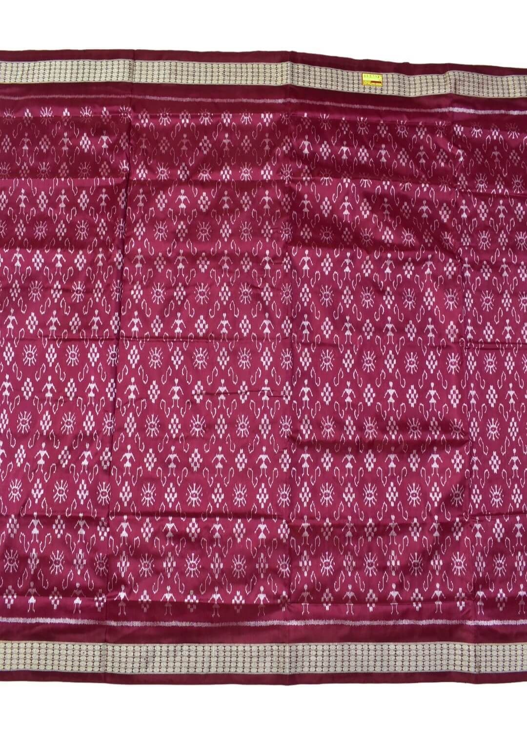 Pink Colour Tribal Design Sambalpuri Handloom Bandha Silk Saree