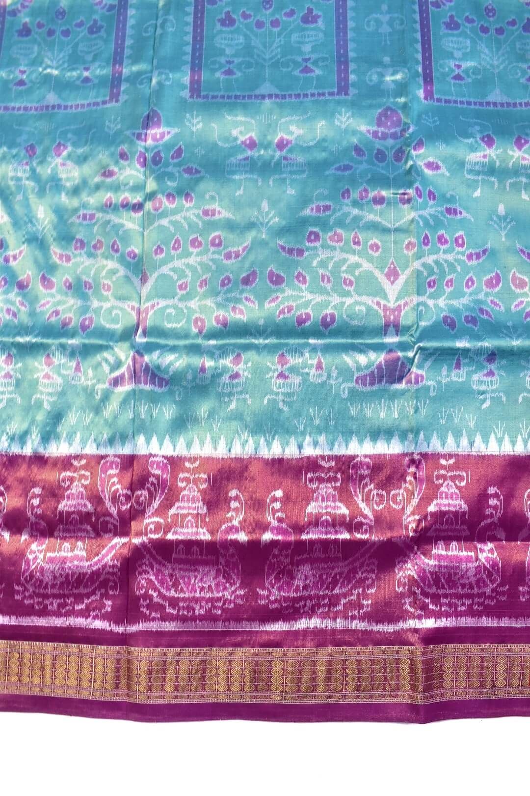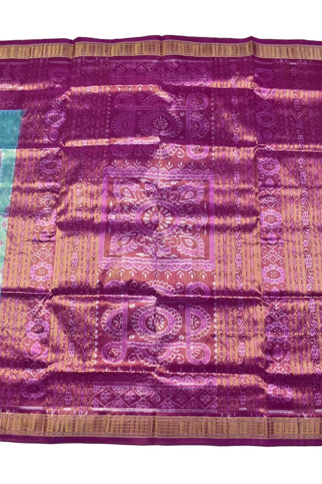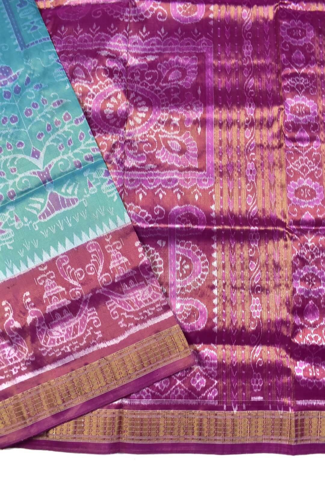 Rama Green-Pink Combination Sambalpuri Handloom Pure Full Tissue Bandha Silk Saree