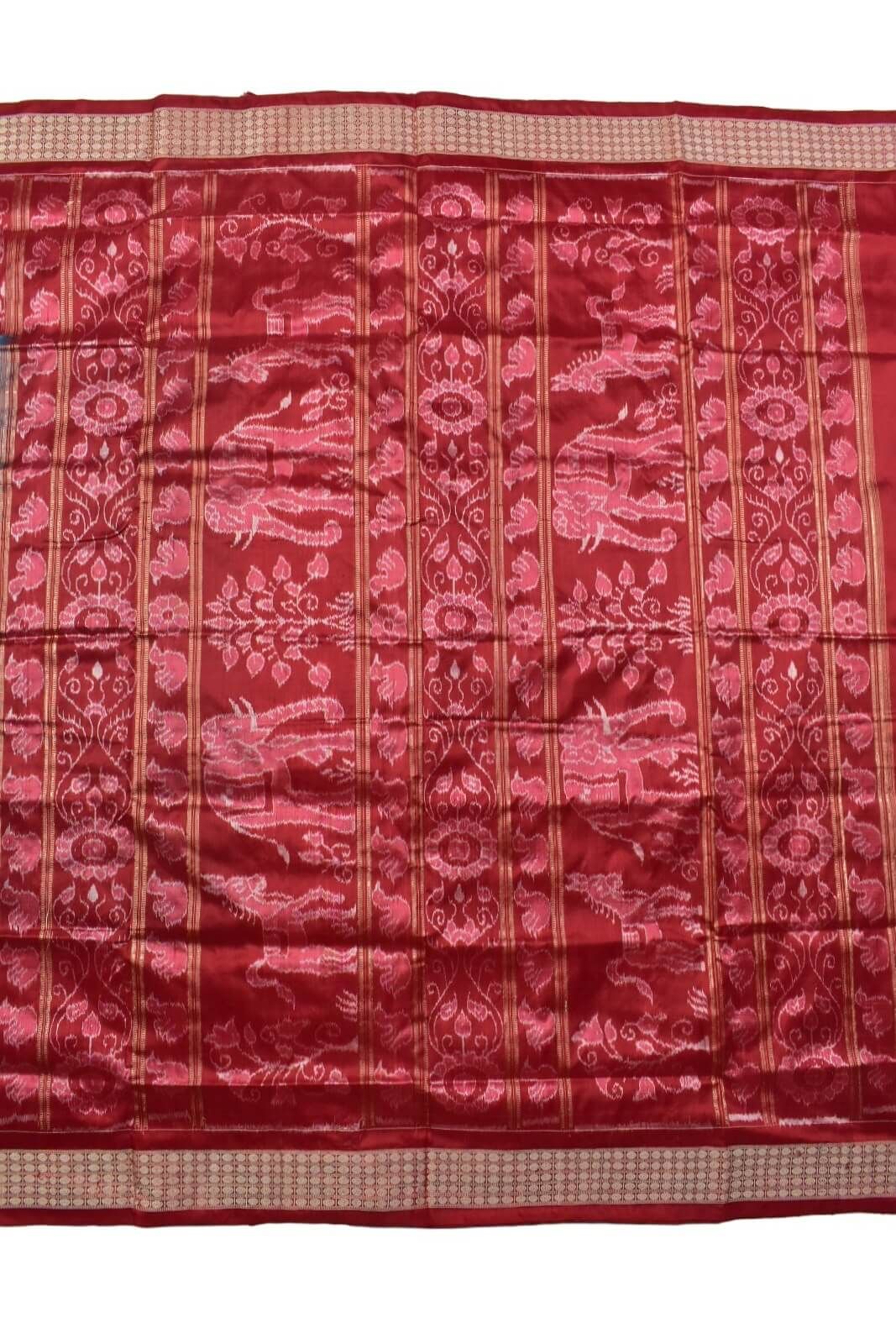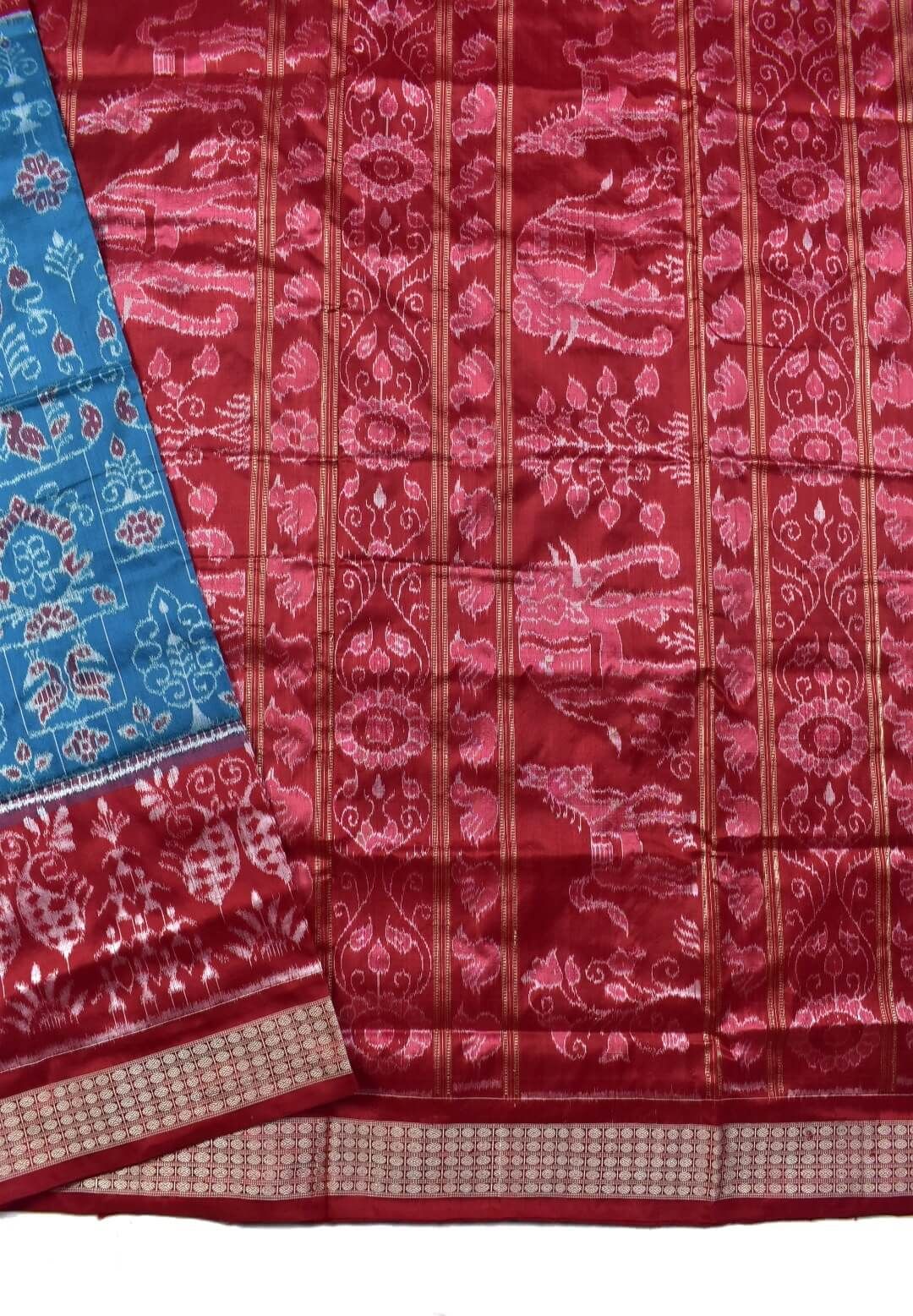 Rama green-Red Combination Sambalpuri Handloom Bandha Silk Saree