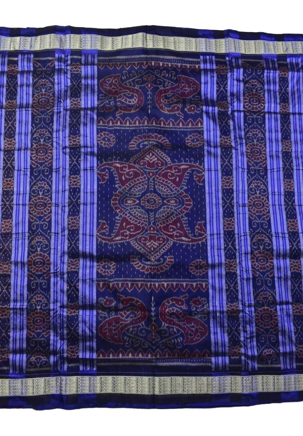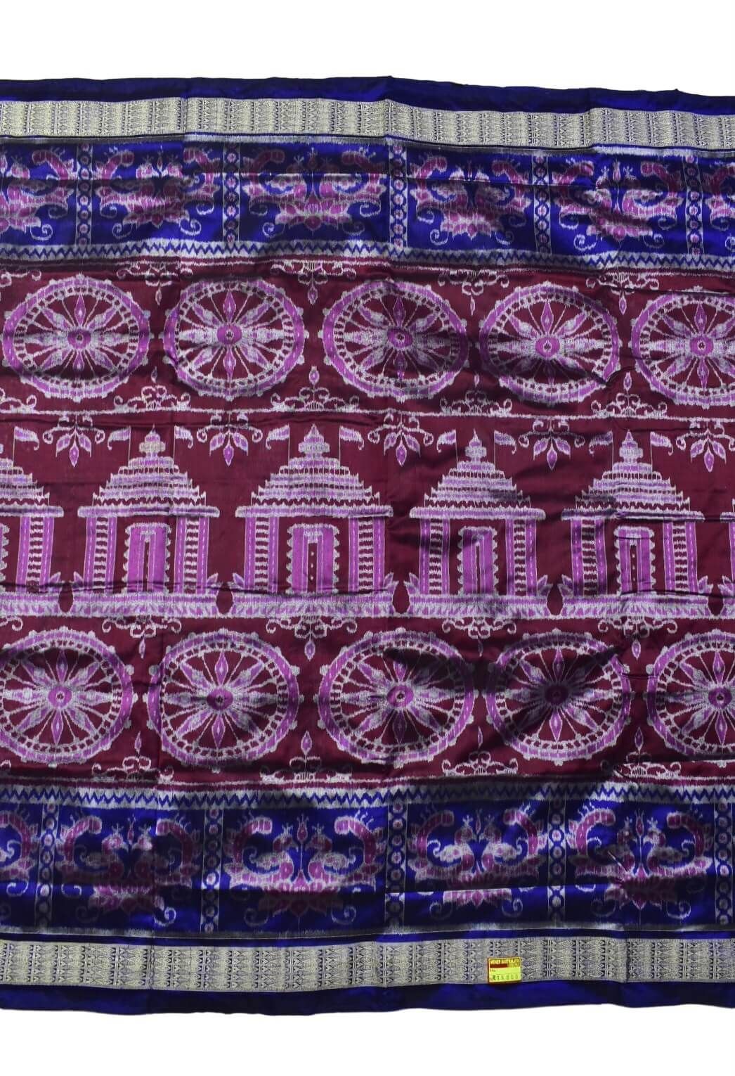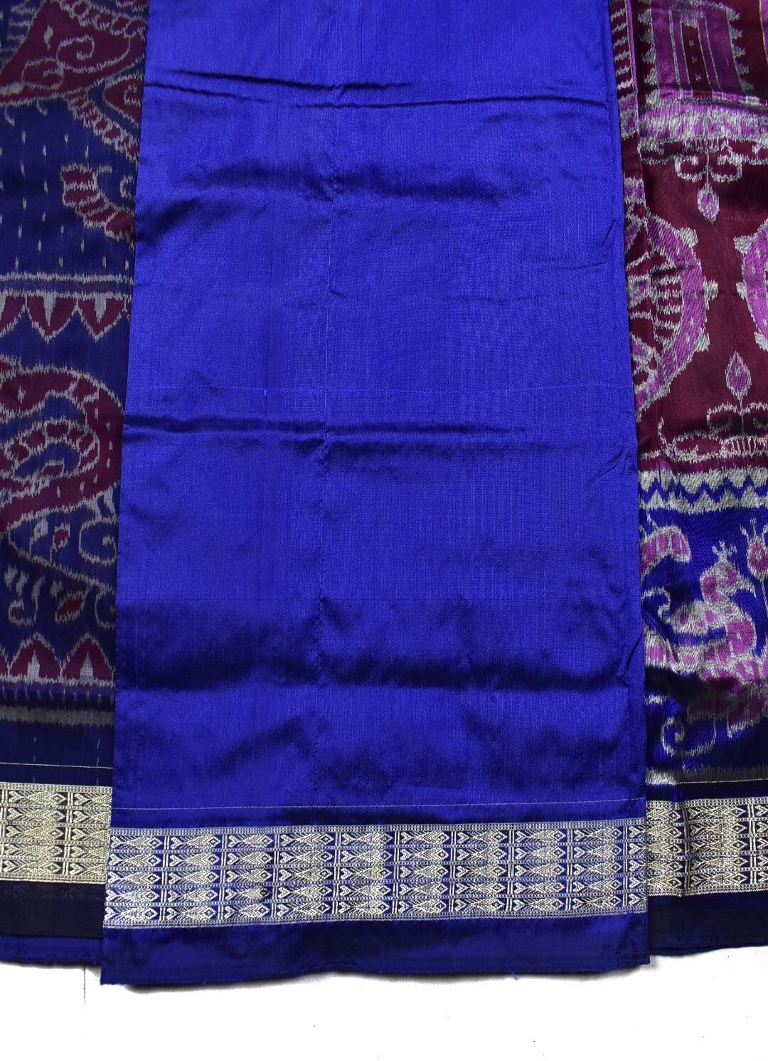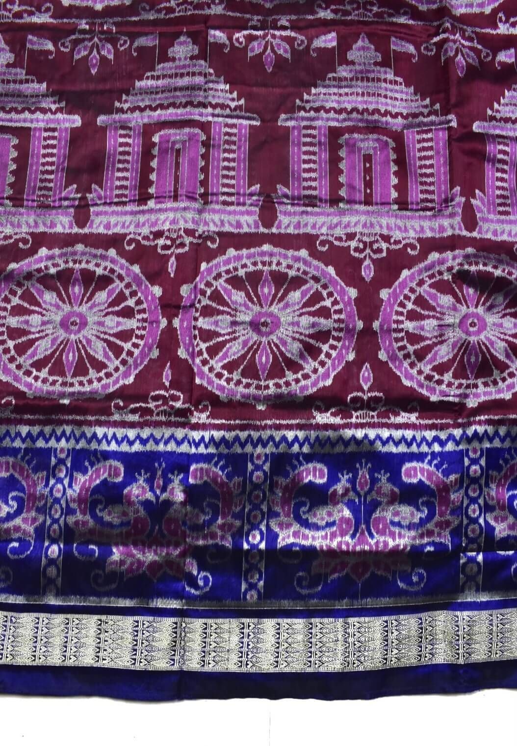 Rani-Blue Combination Konark Design Sambalpuri Handloom Mix Silk Saree