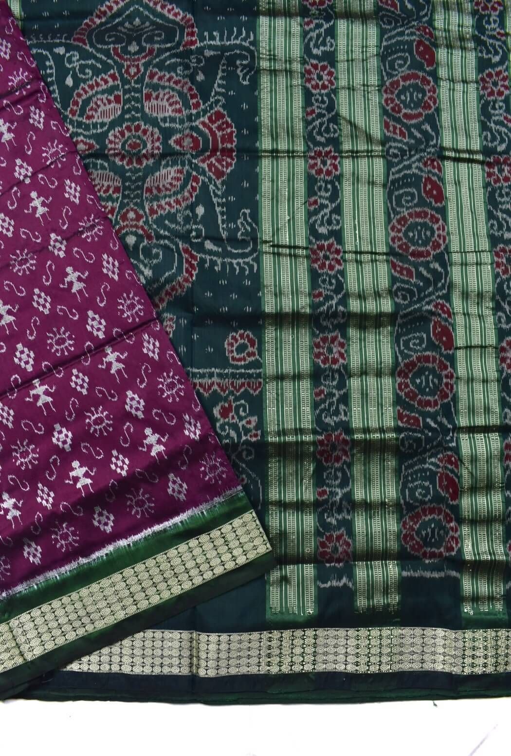 Rani Colour Tribal Design Sambalpuri Handloom Bandha Silk Saree