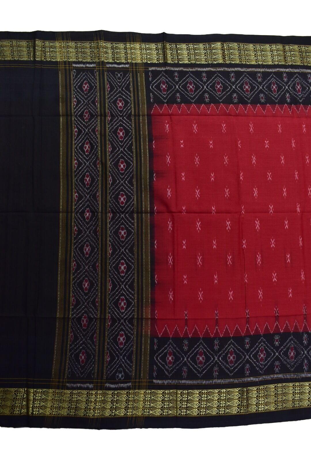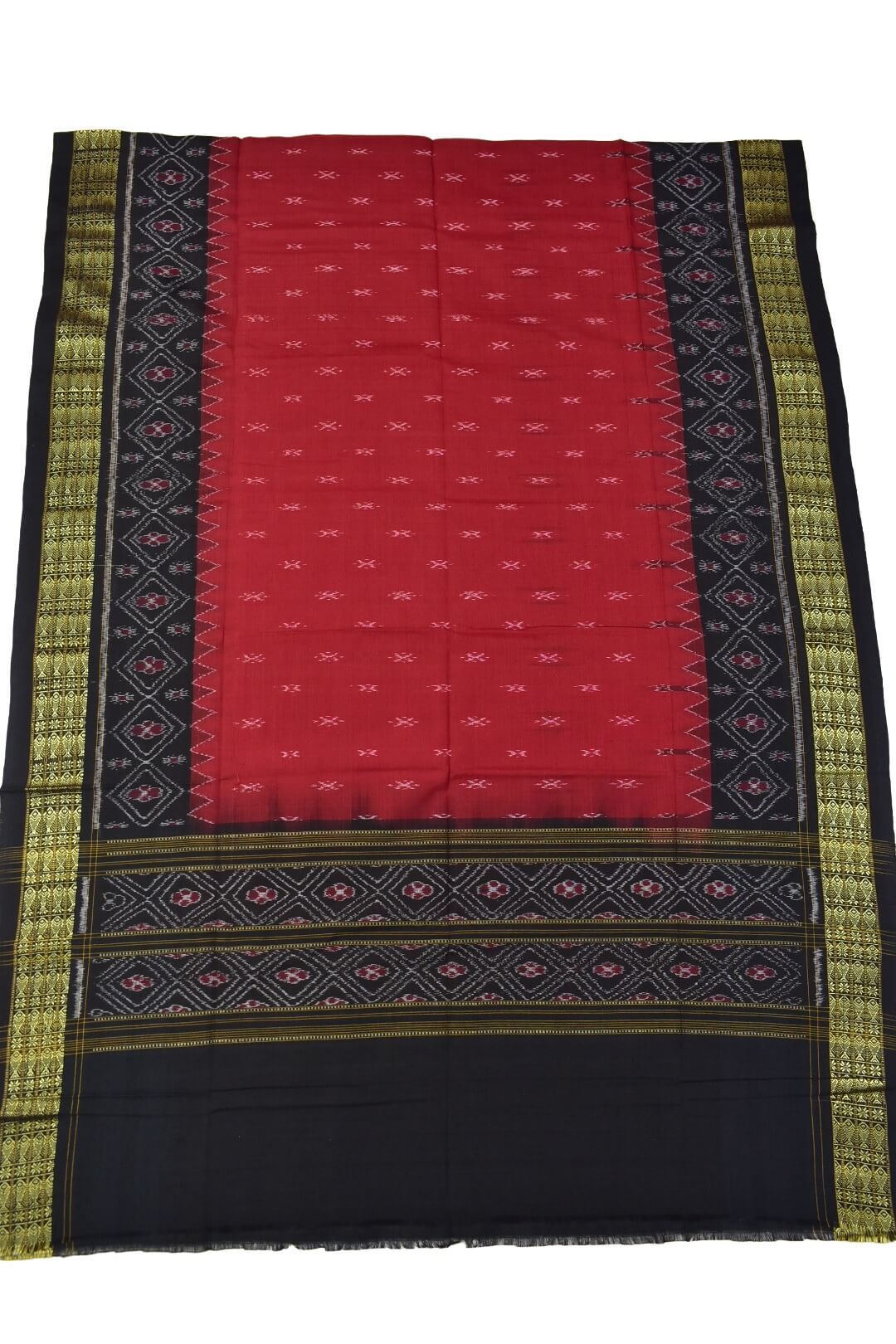 Red-Black Fish Border Sambalpuri Handloom Cotton Dupatta