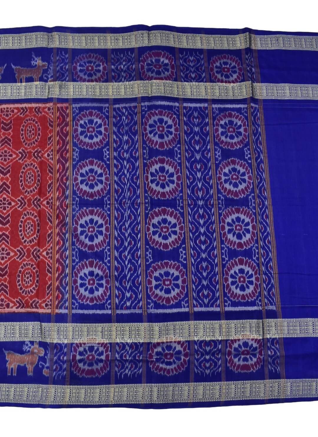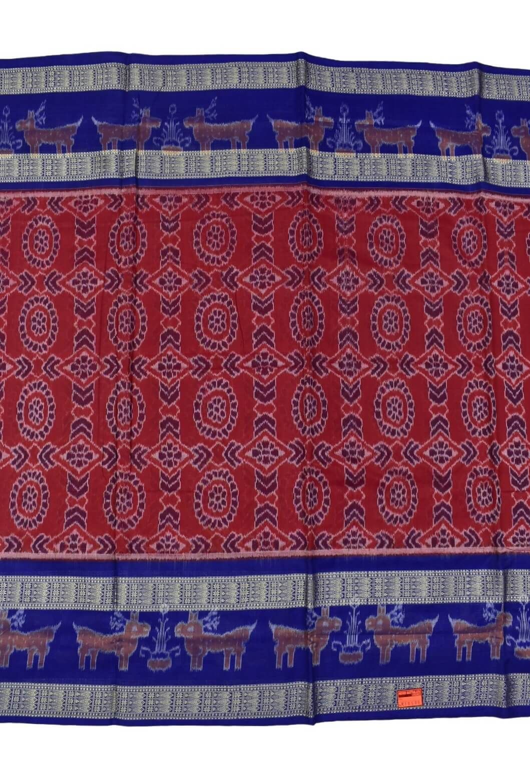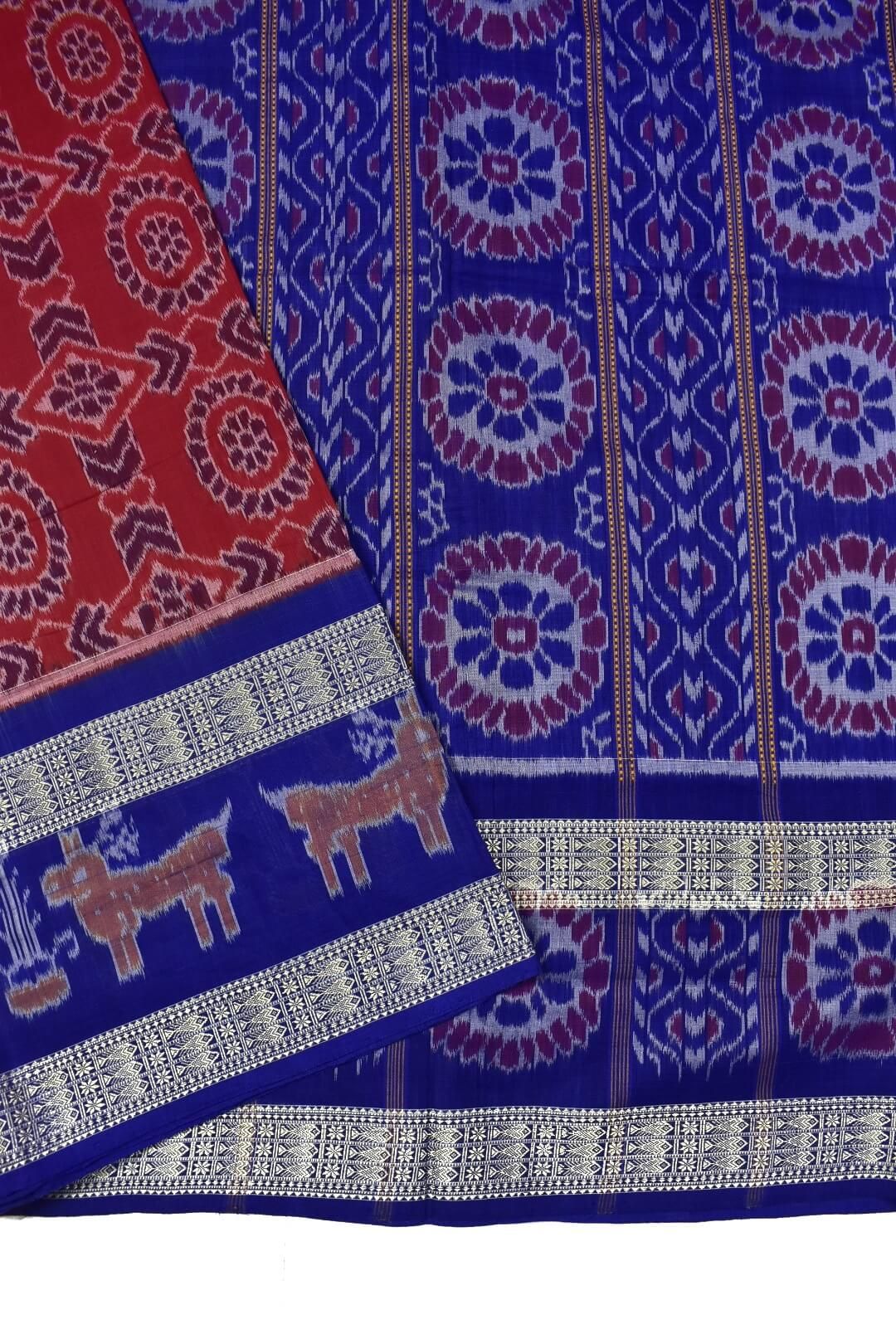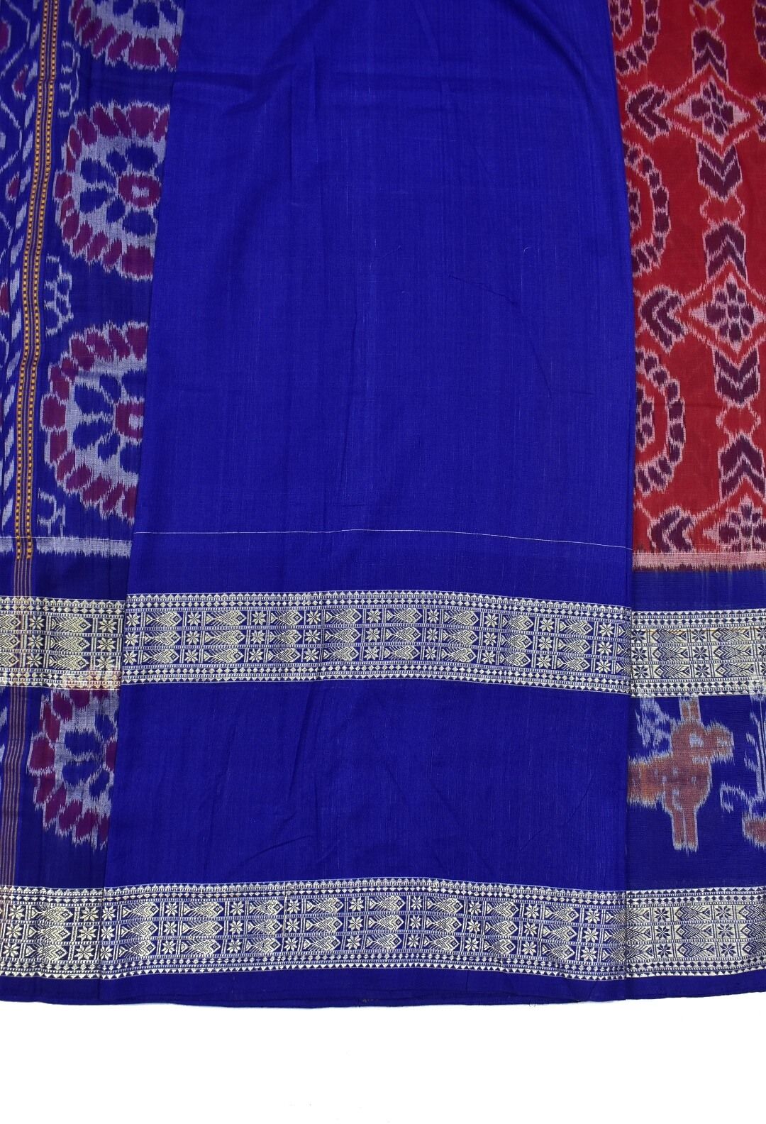 Red-Blue Combination Double Border Sambalpuri Handloom Cotton Saree