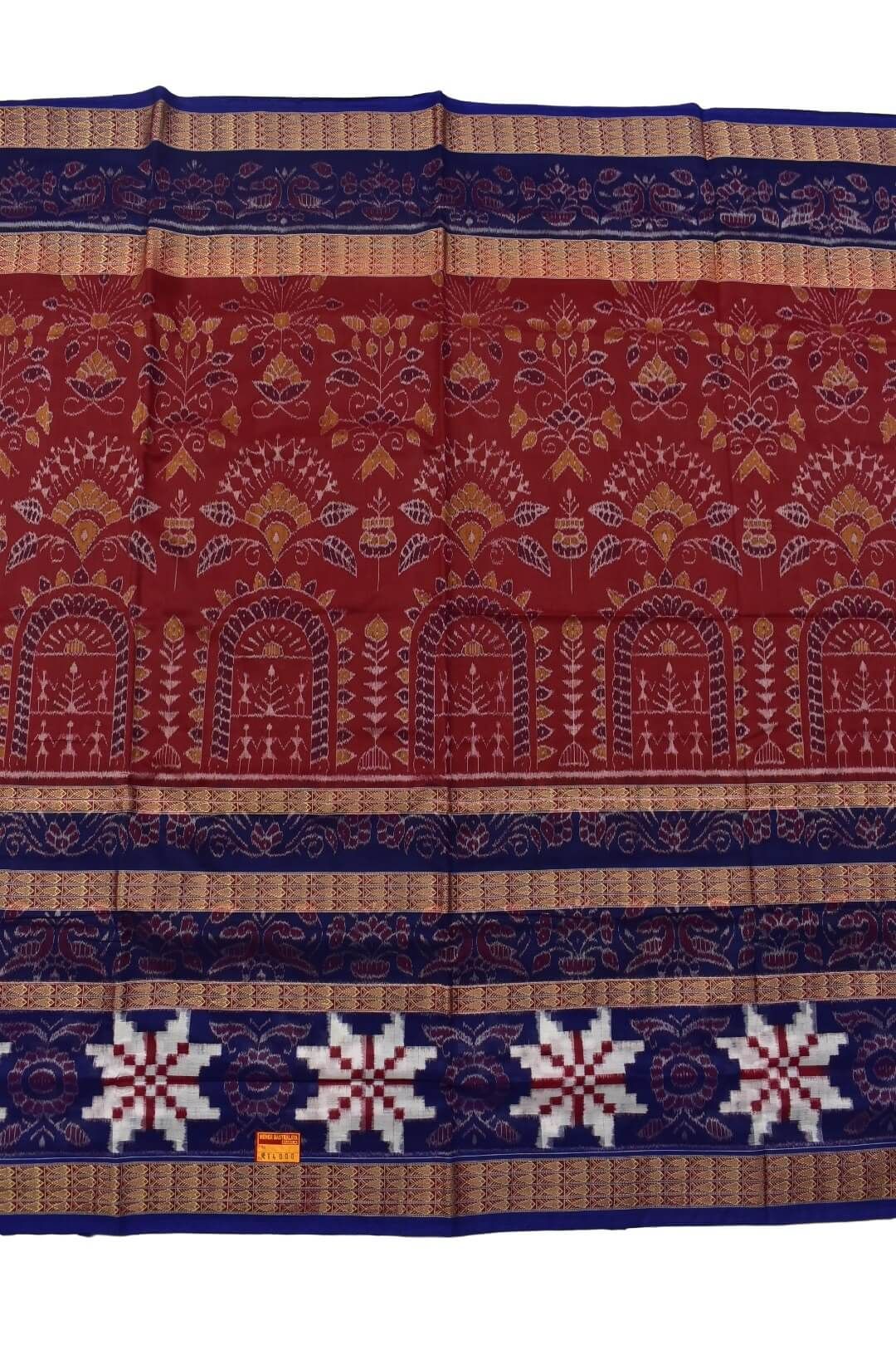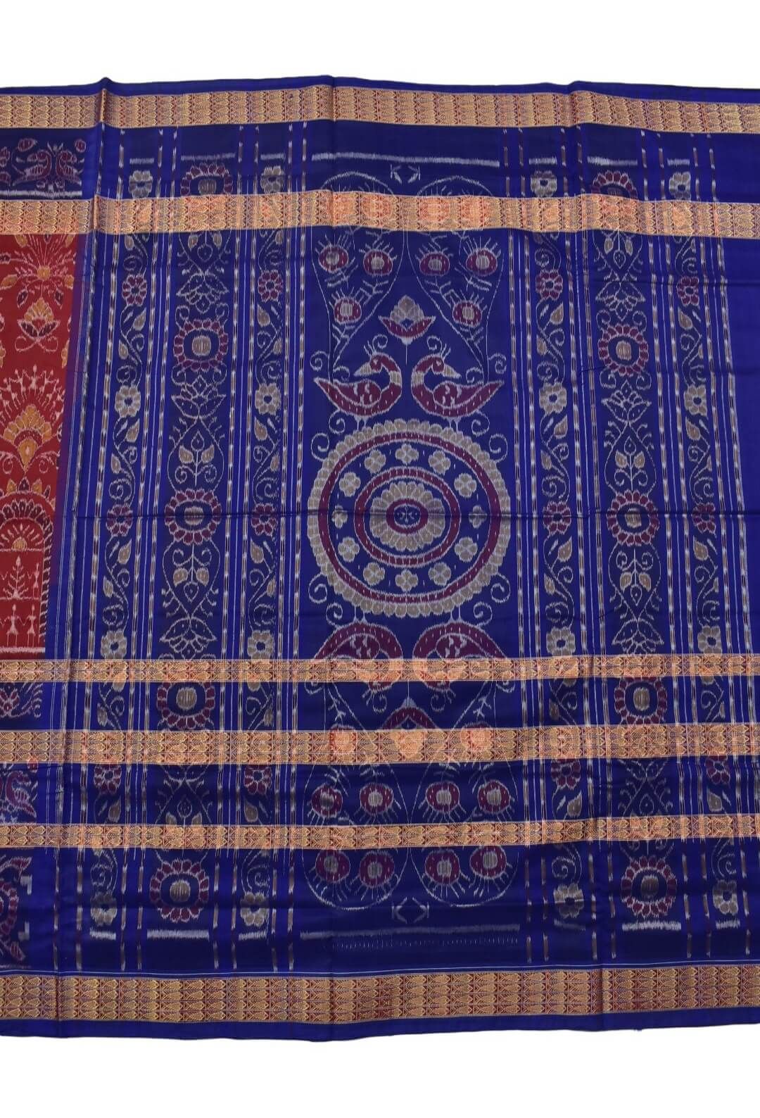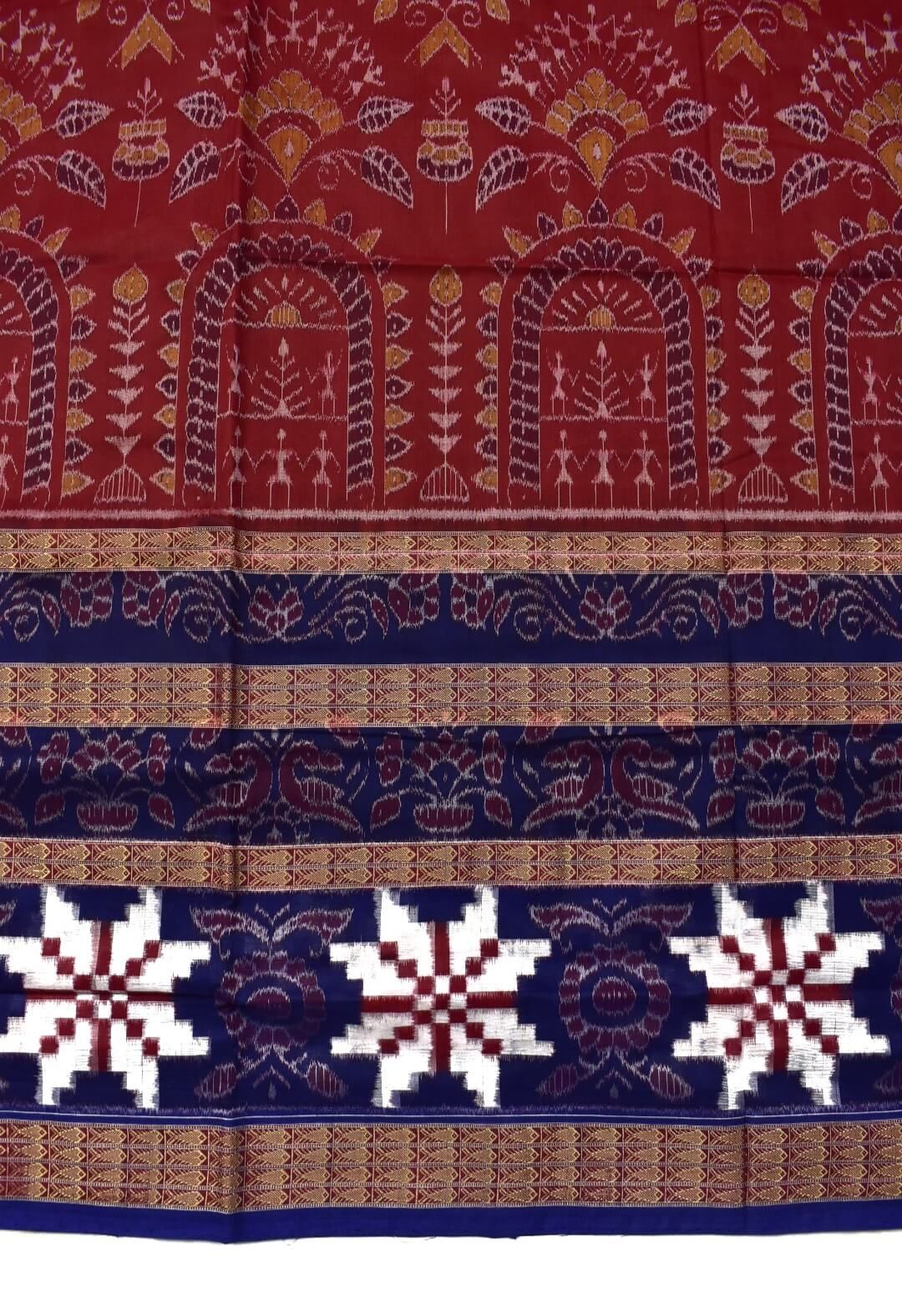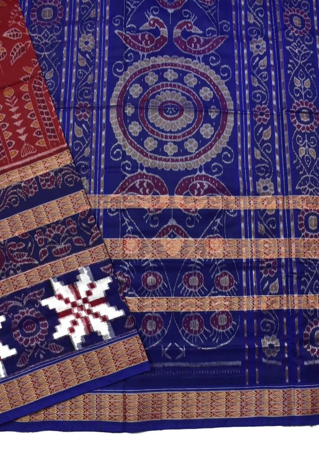 Red-Blue Combination Star Boder Sambalpuri Handloom Bandha Cotton Saree