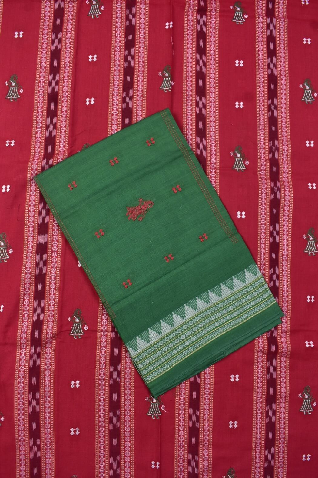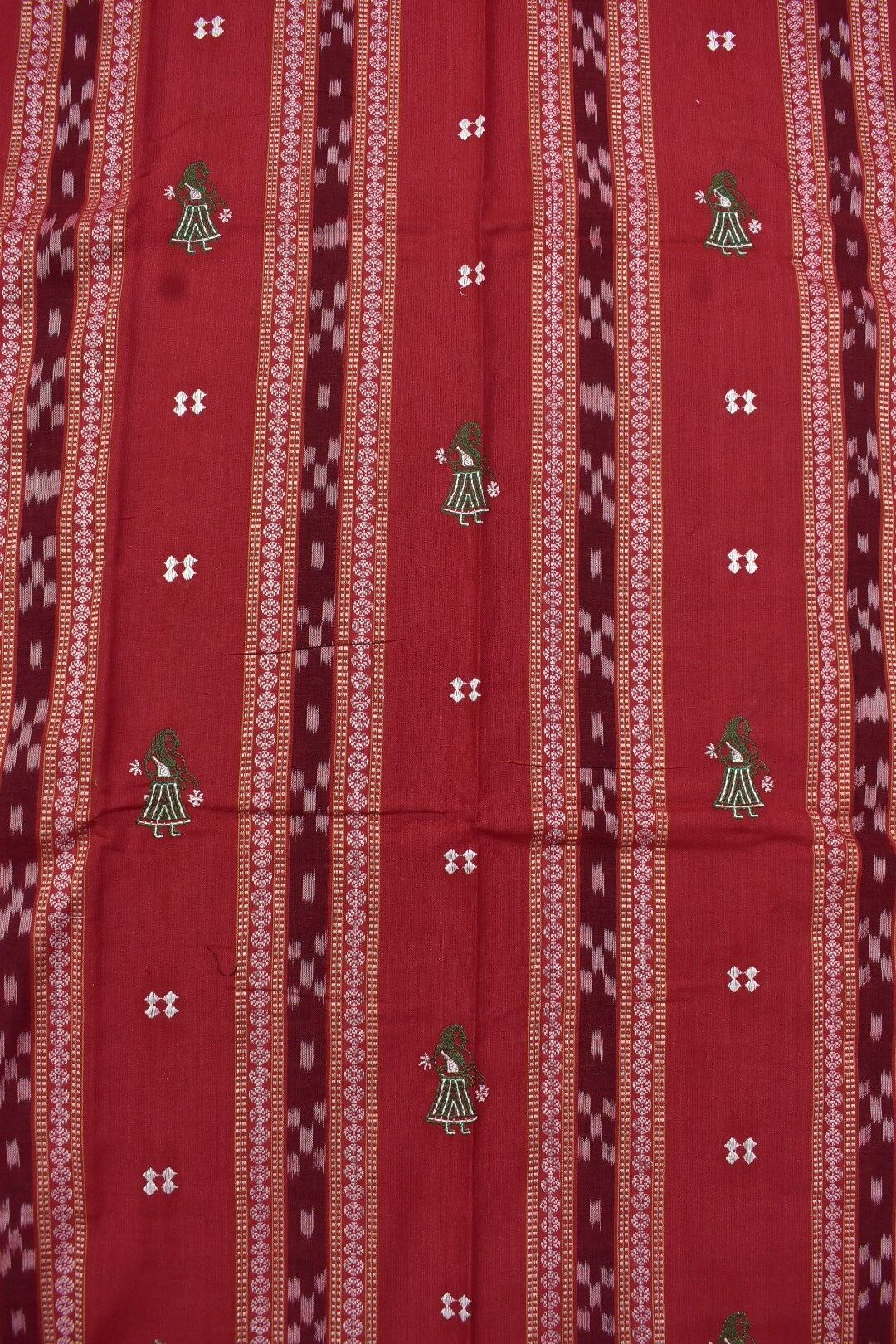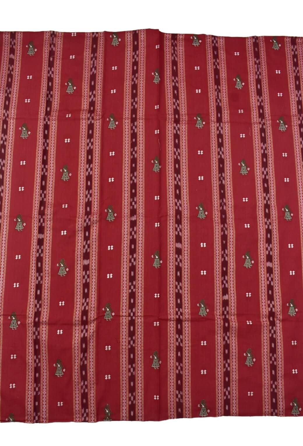 Red Colour Doll Design Sambalpuri Handloom Cotton Bomkai Dress Material