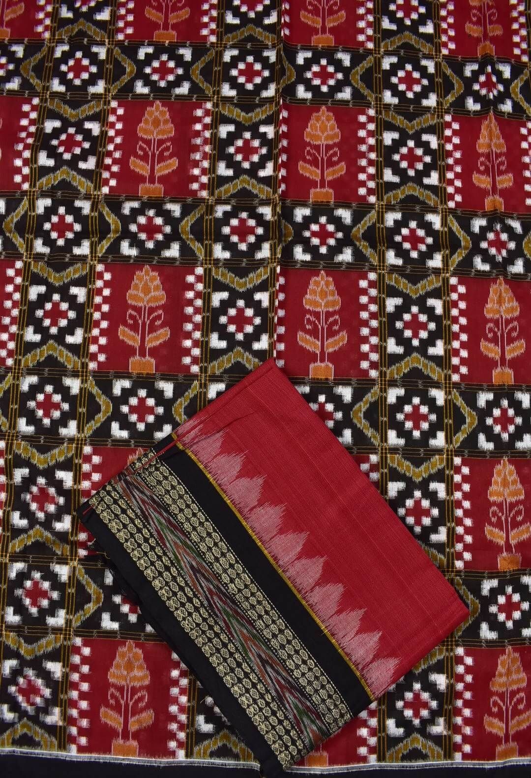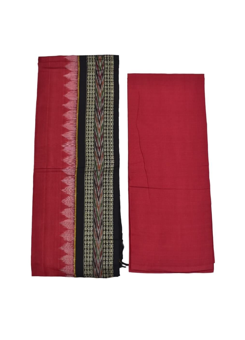 Red Colour Pasapali Design Sambalpuri Handloom Cotton Dress Materials