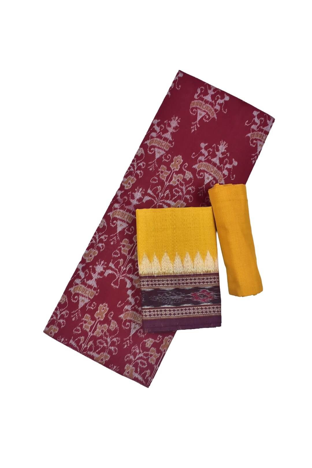 Red Colour Sambalpuri Handloom Cotton Dress Material