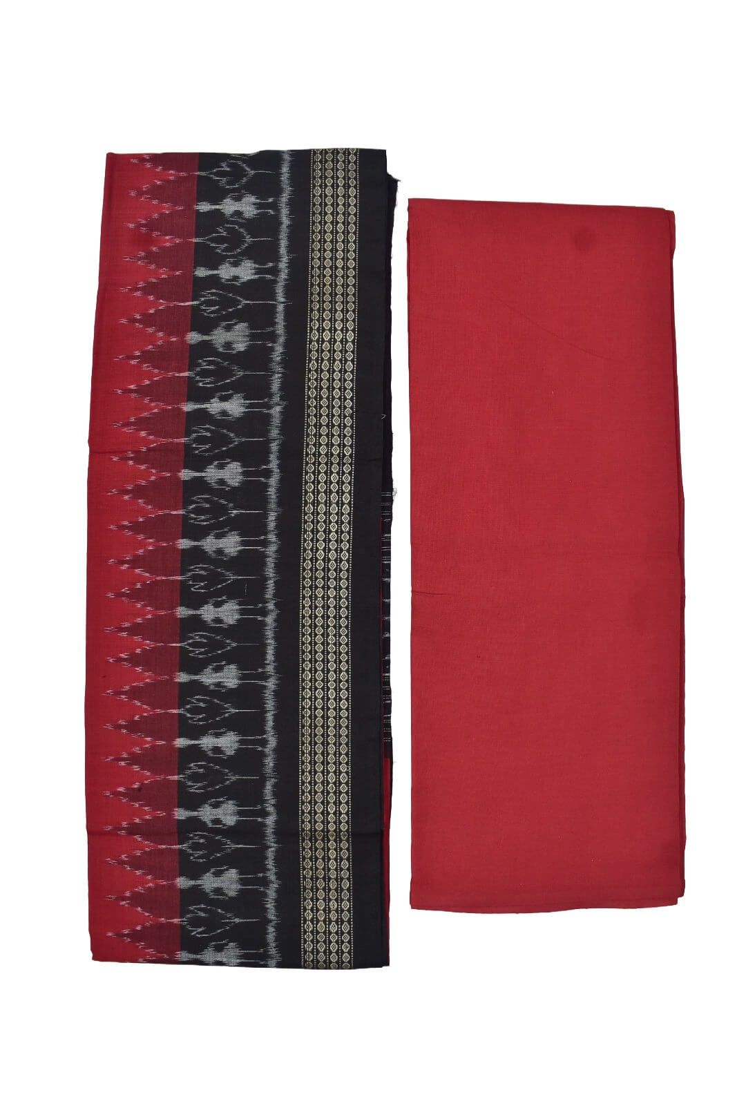 Red-Green Pasapali Design Sambalpuri Handloom Cotton Dress Material