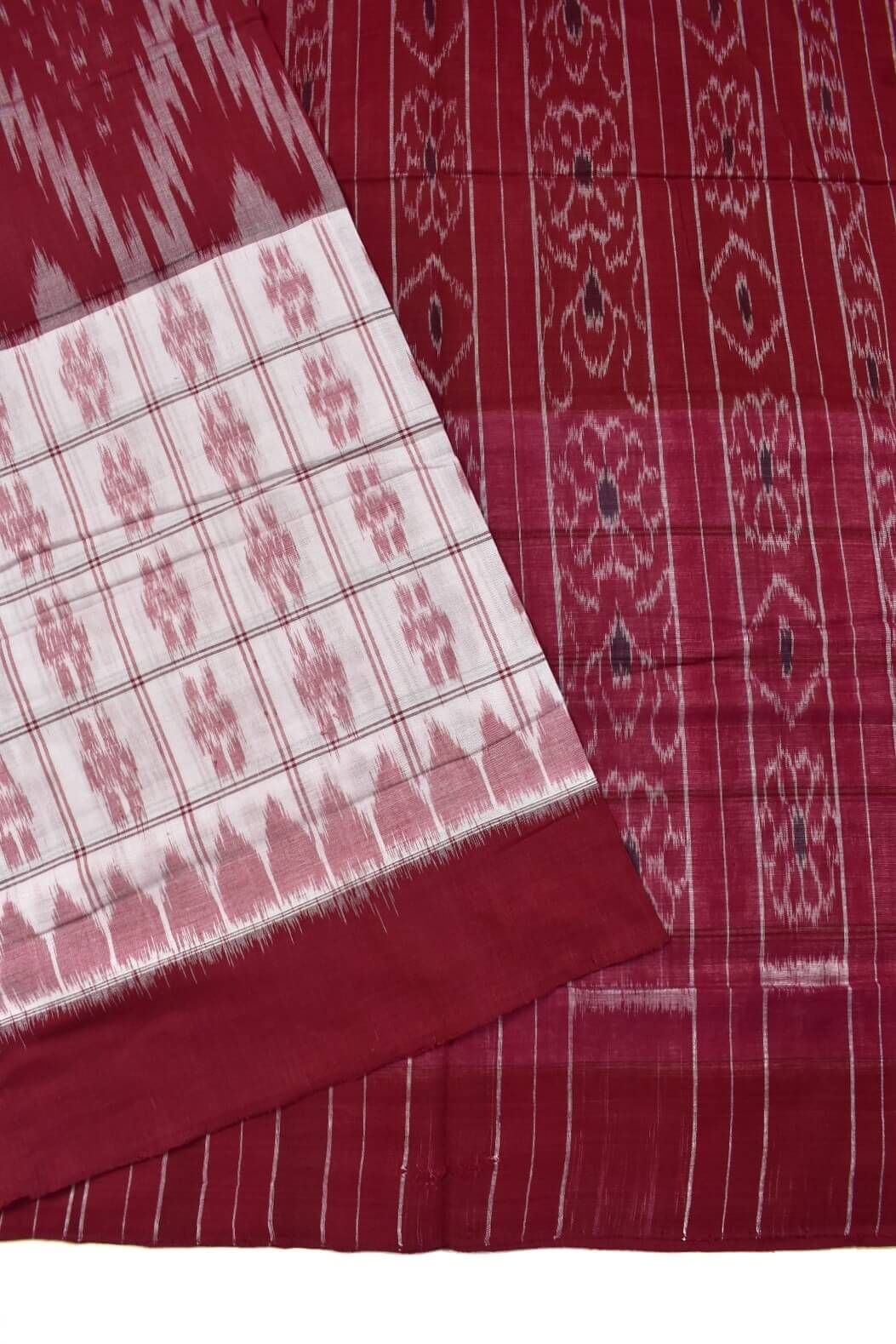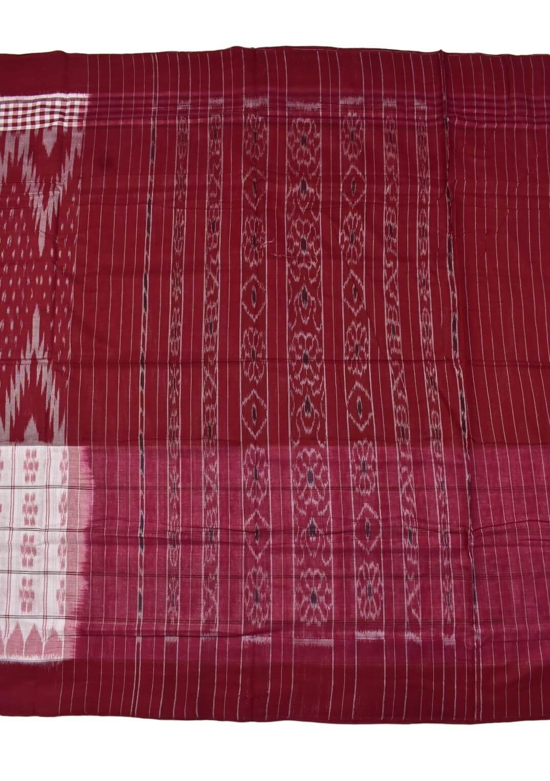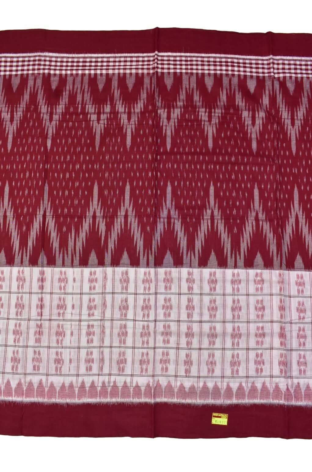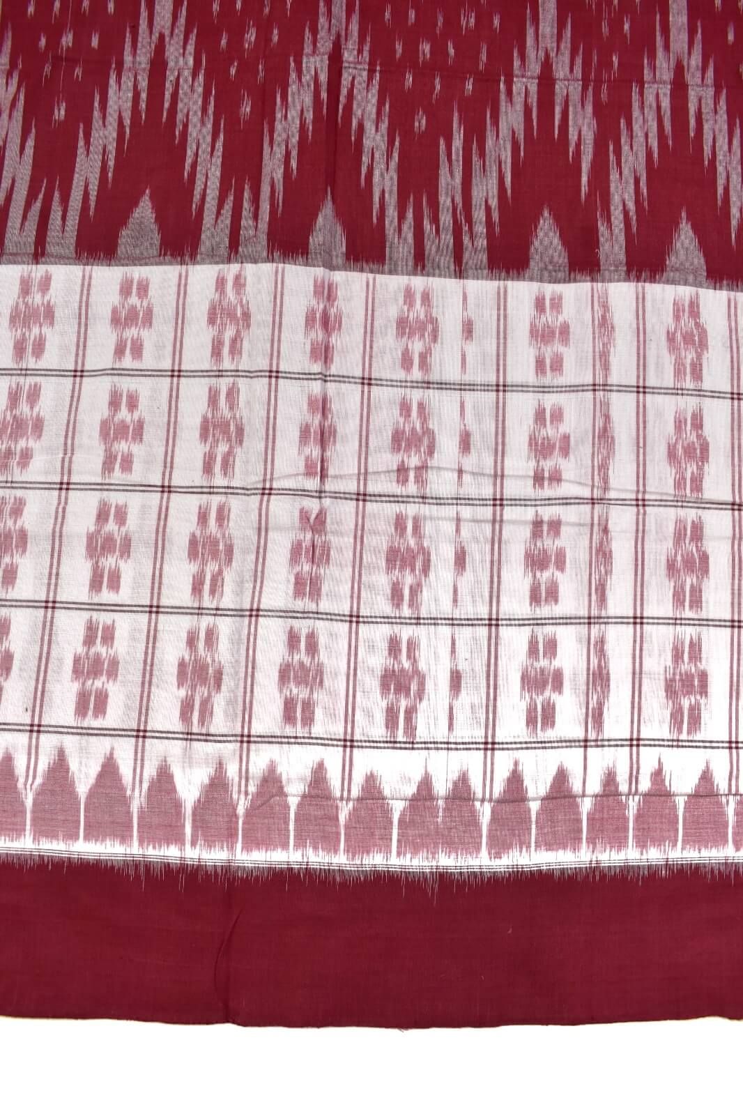 Maroon – White Colour Sambalpuri Handloom Mania Bandha Cotton Saree