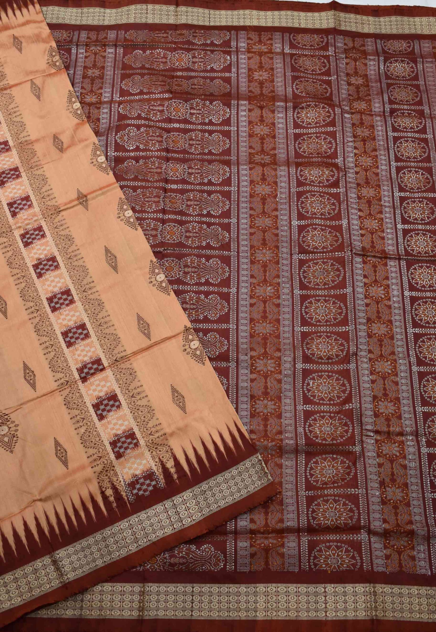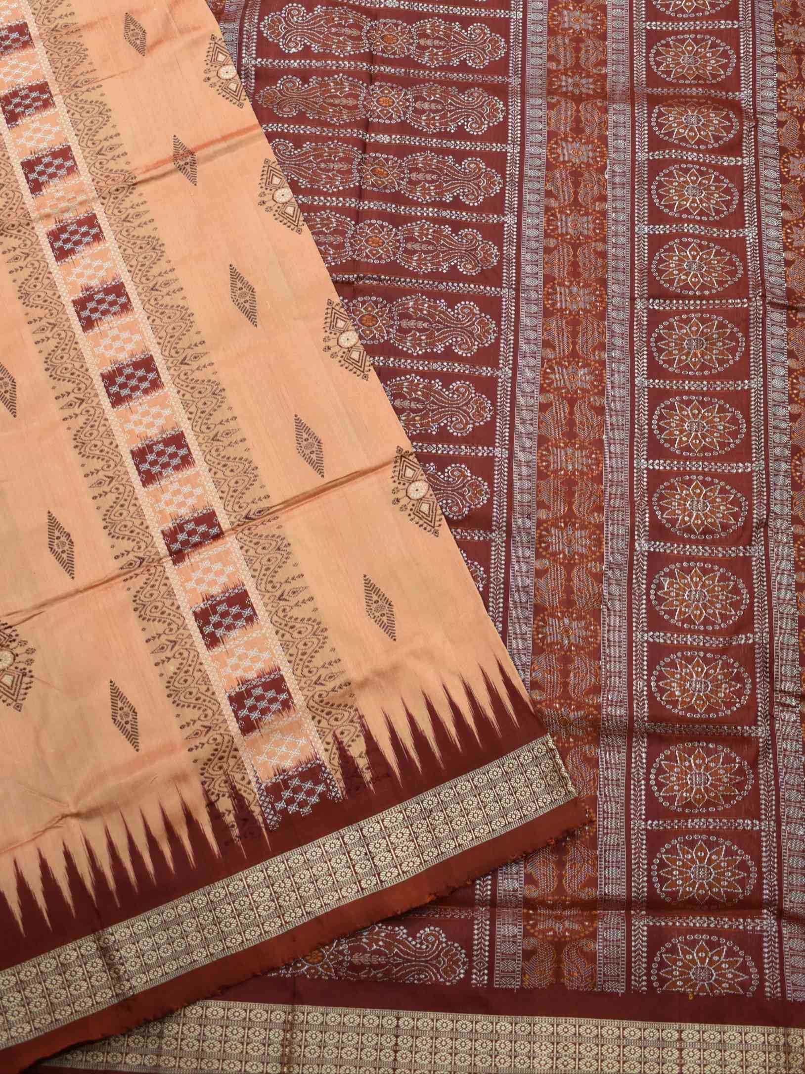 Peach Colour Sambalpuri Handloom Bomkai Silk Saree