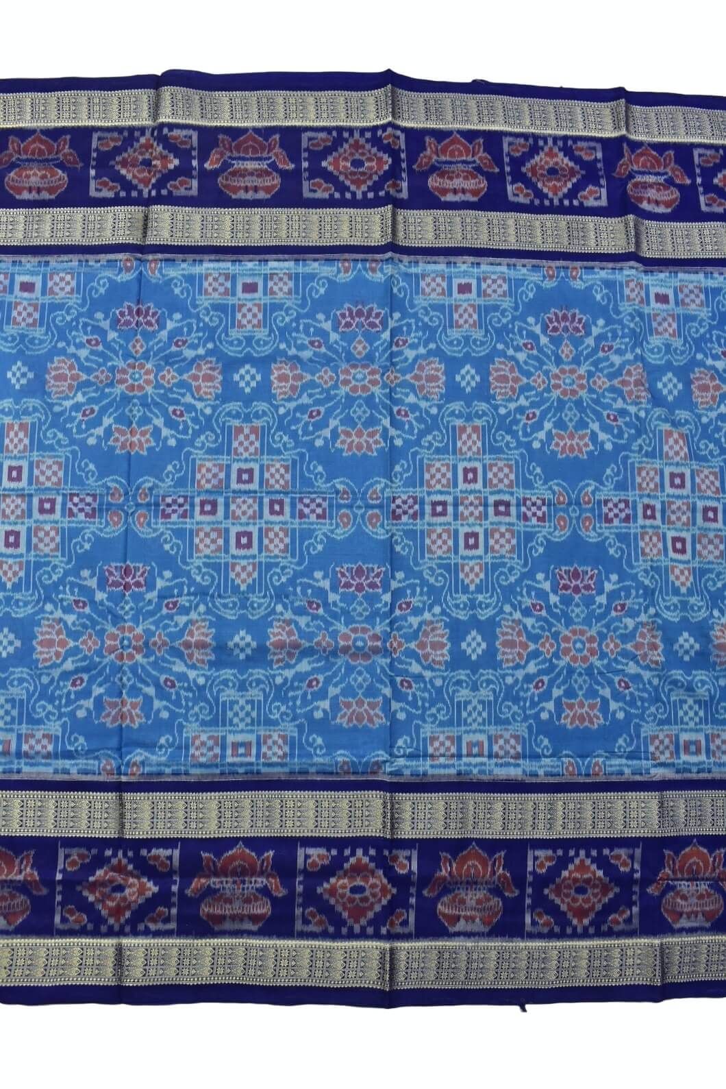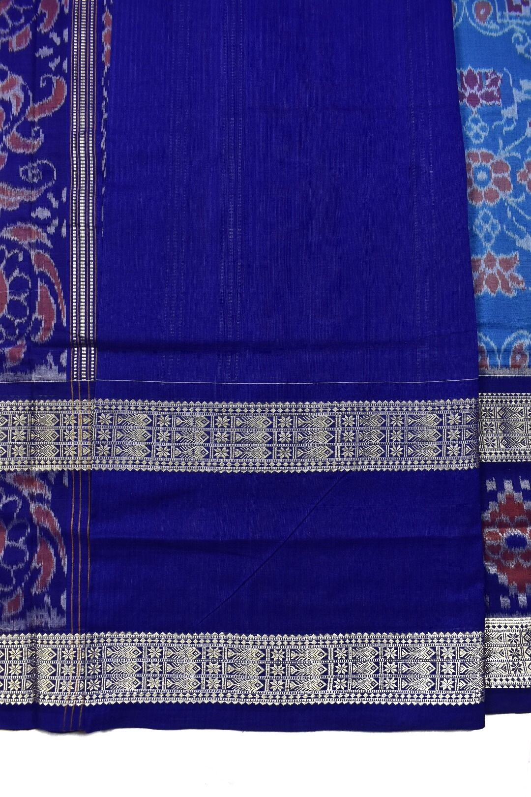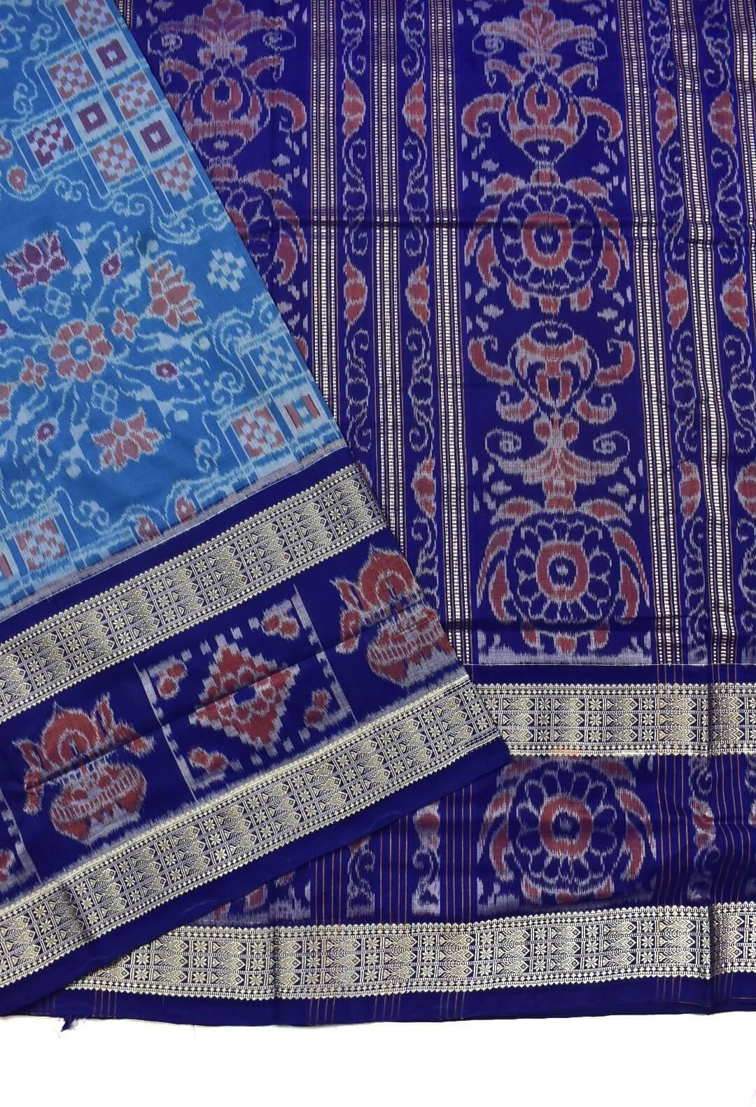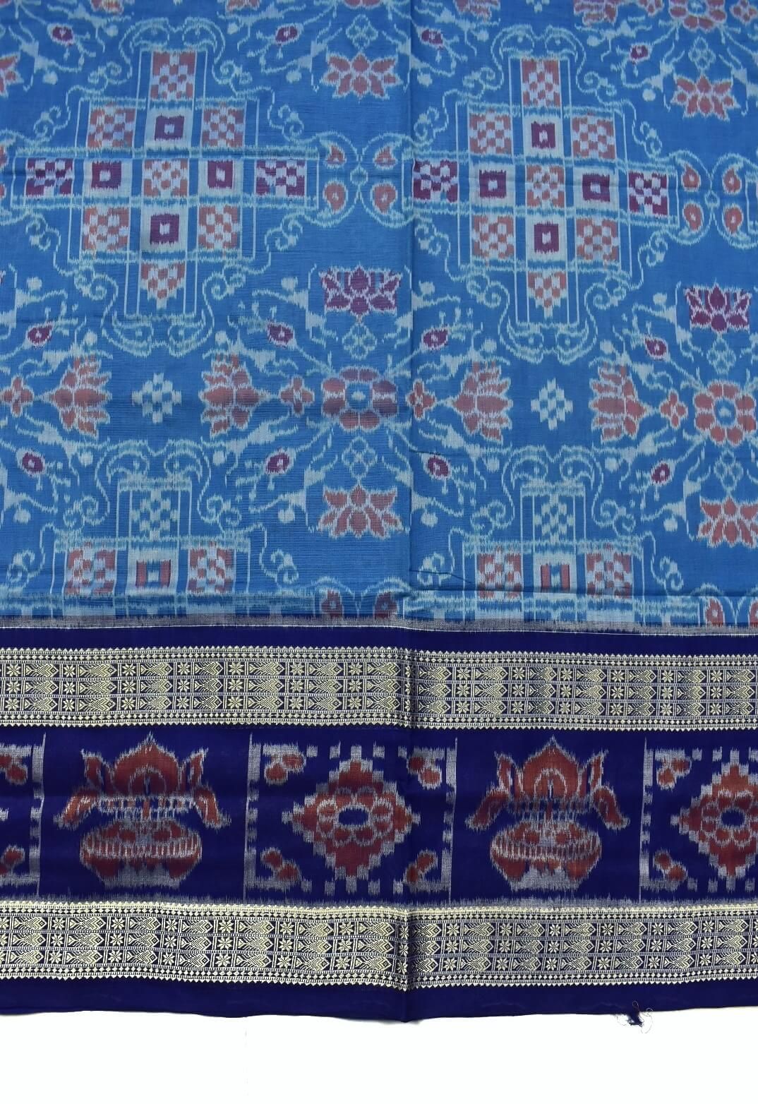 Sky Colour Double Border Sambalpuri Handloom Bandha Cotton Saree