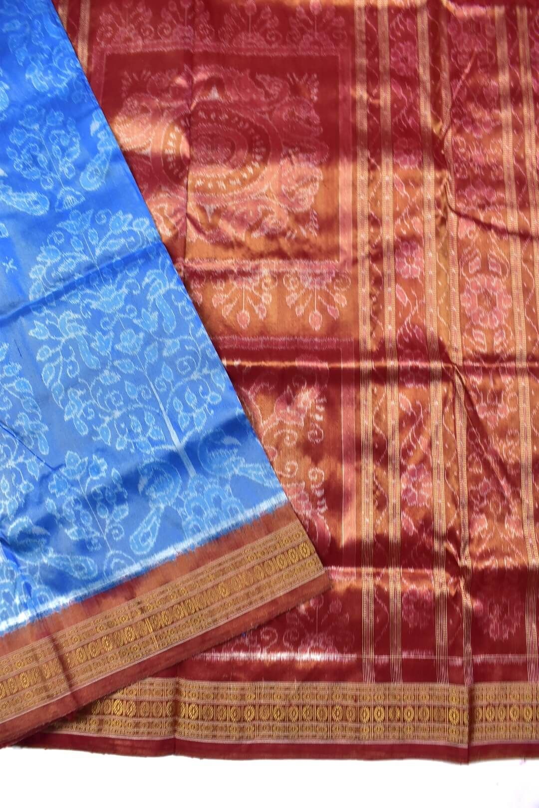 Sky Colour Sambalpuri Handloom Full Tisse Bandha Silk Saree