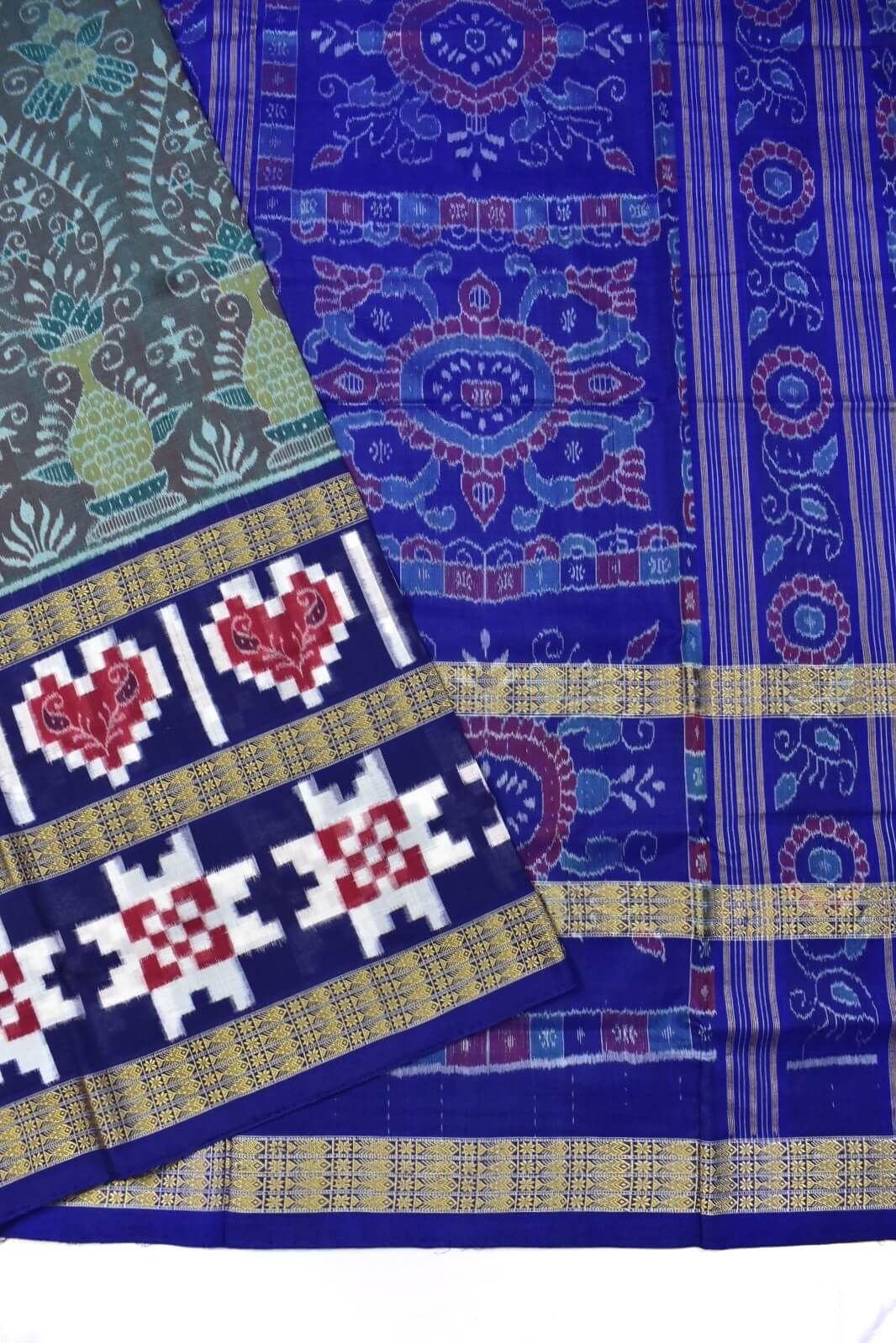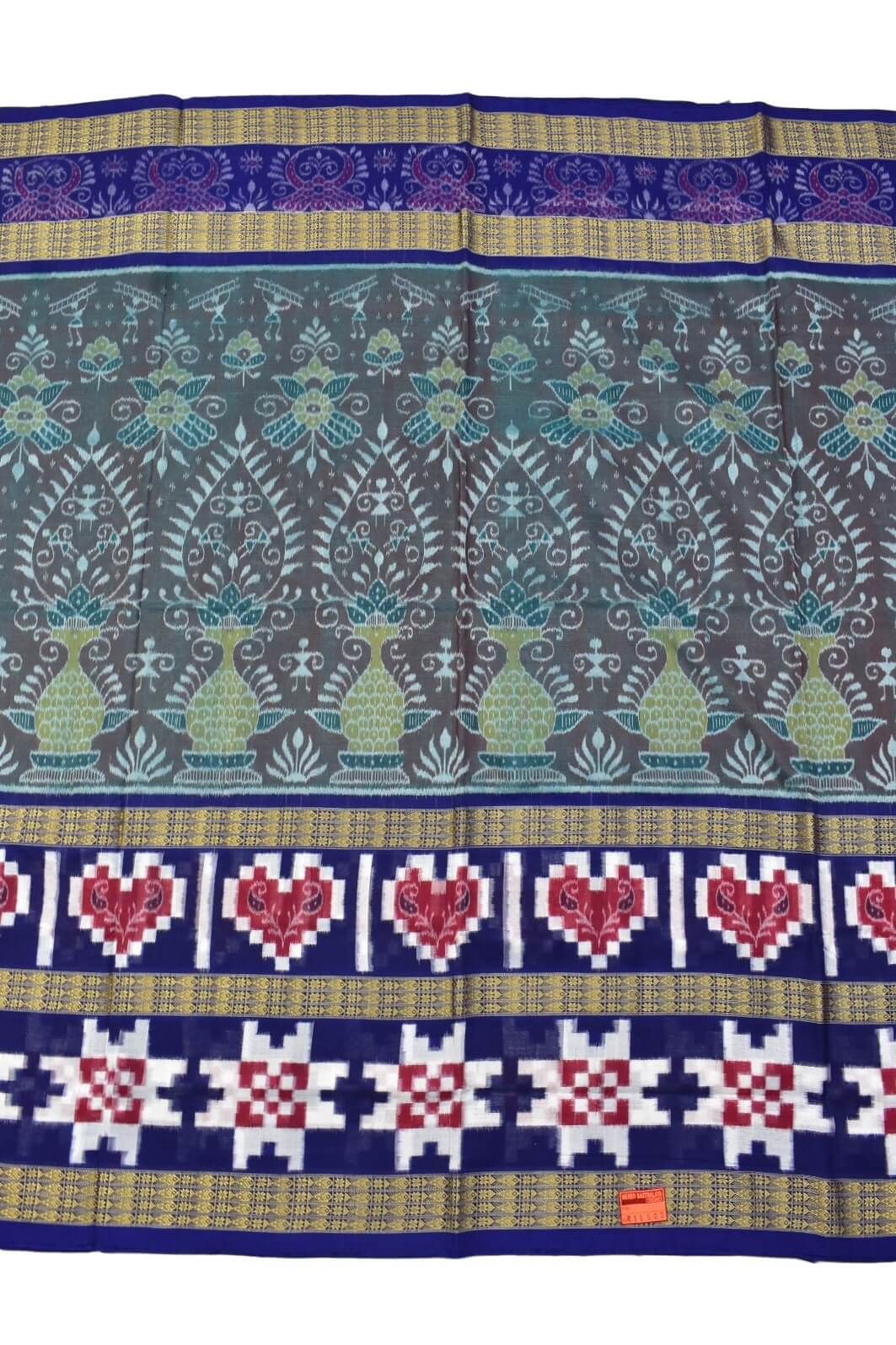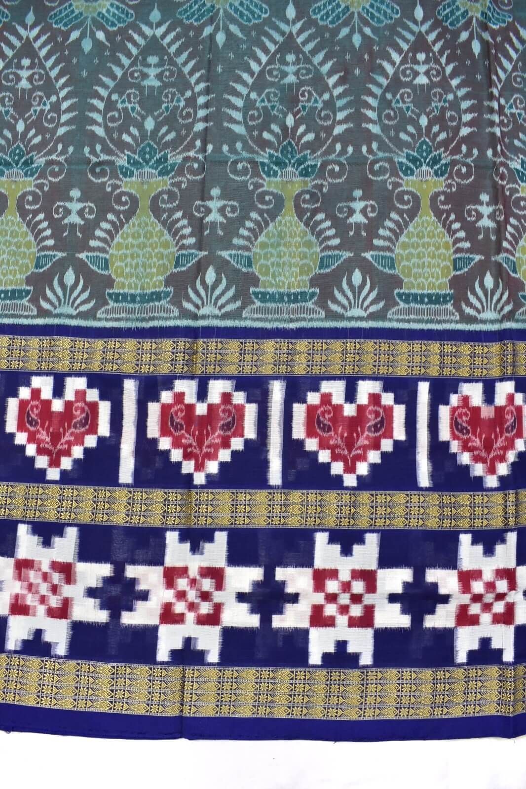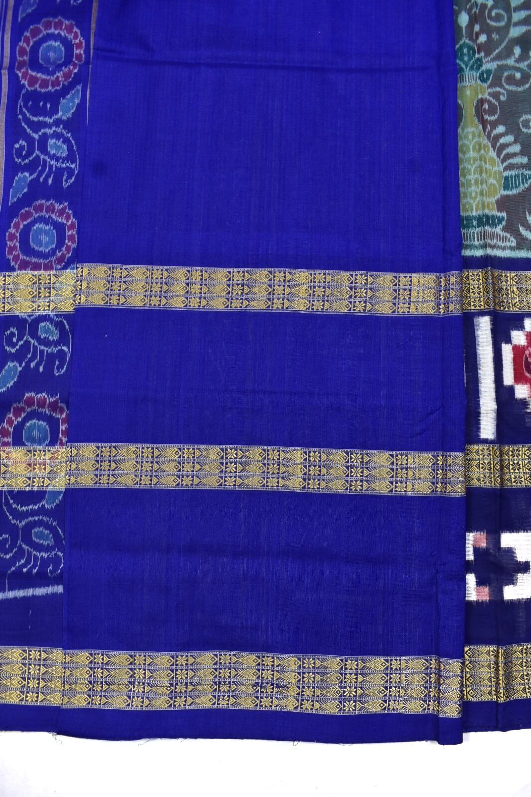 Teal Colour Star Boder Sambalpuri Handloom Bandha Cotton Saree