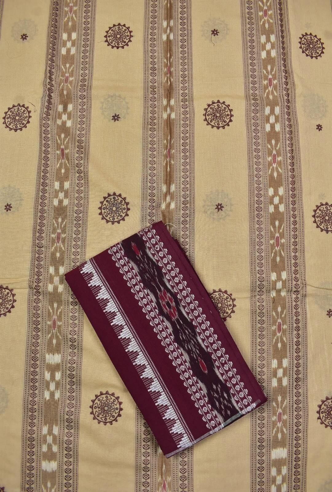Cream Colour Sambalpuri Handloom Cotton Bomkai Dress Material