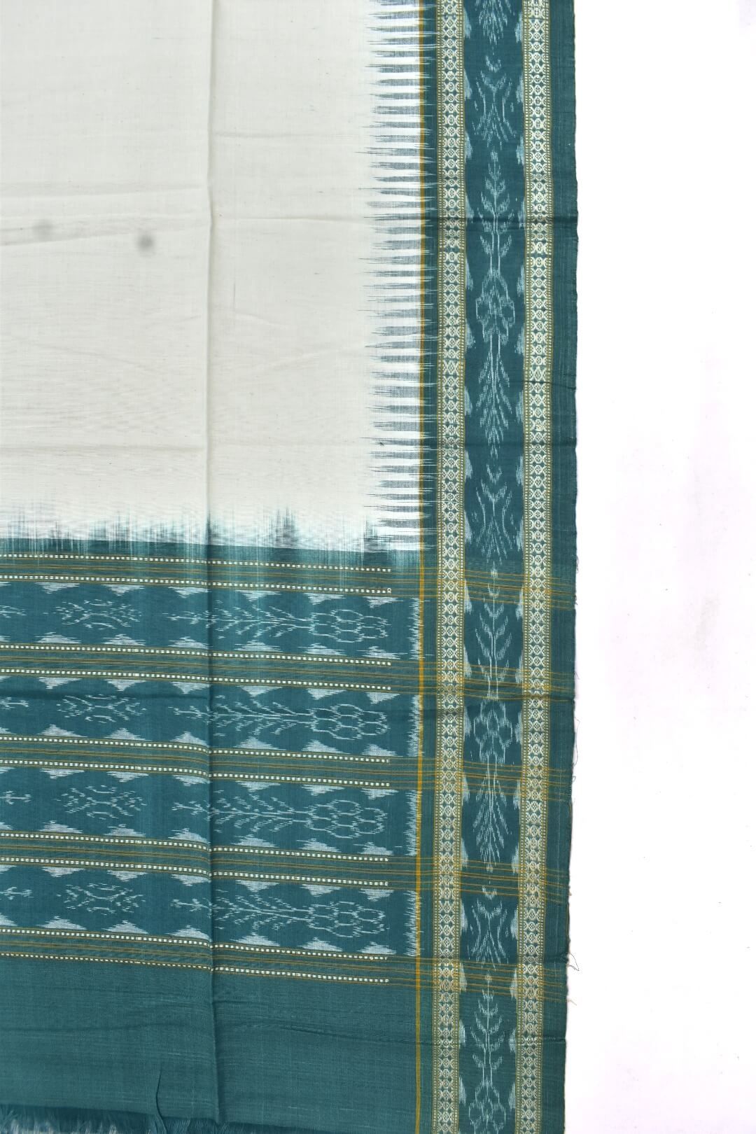 White-Green Sambalpuri Handloom Cotton Dupatta