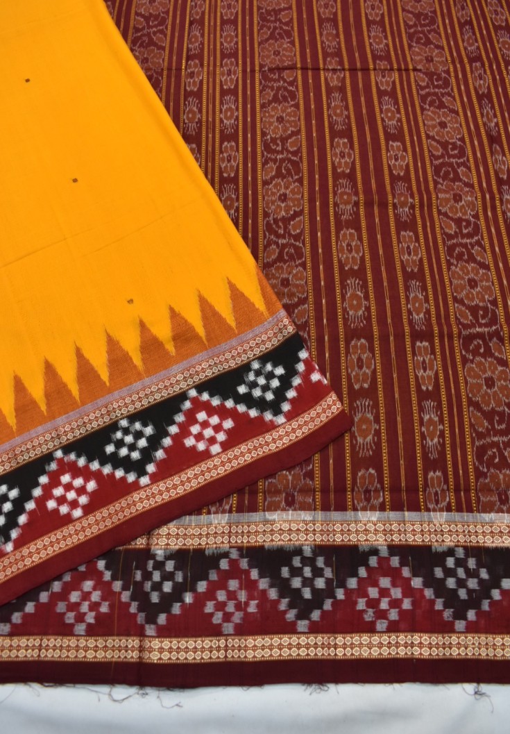 Be the first to review “Yellow Colour Pasapali Border Sambalpuri Handloom Cotton Saree”