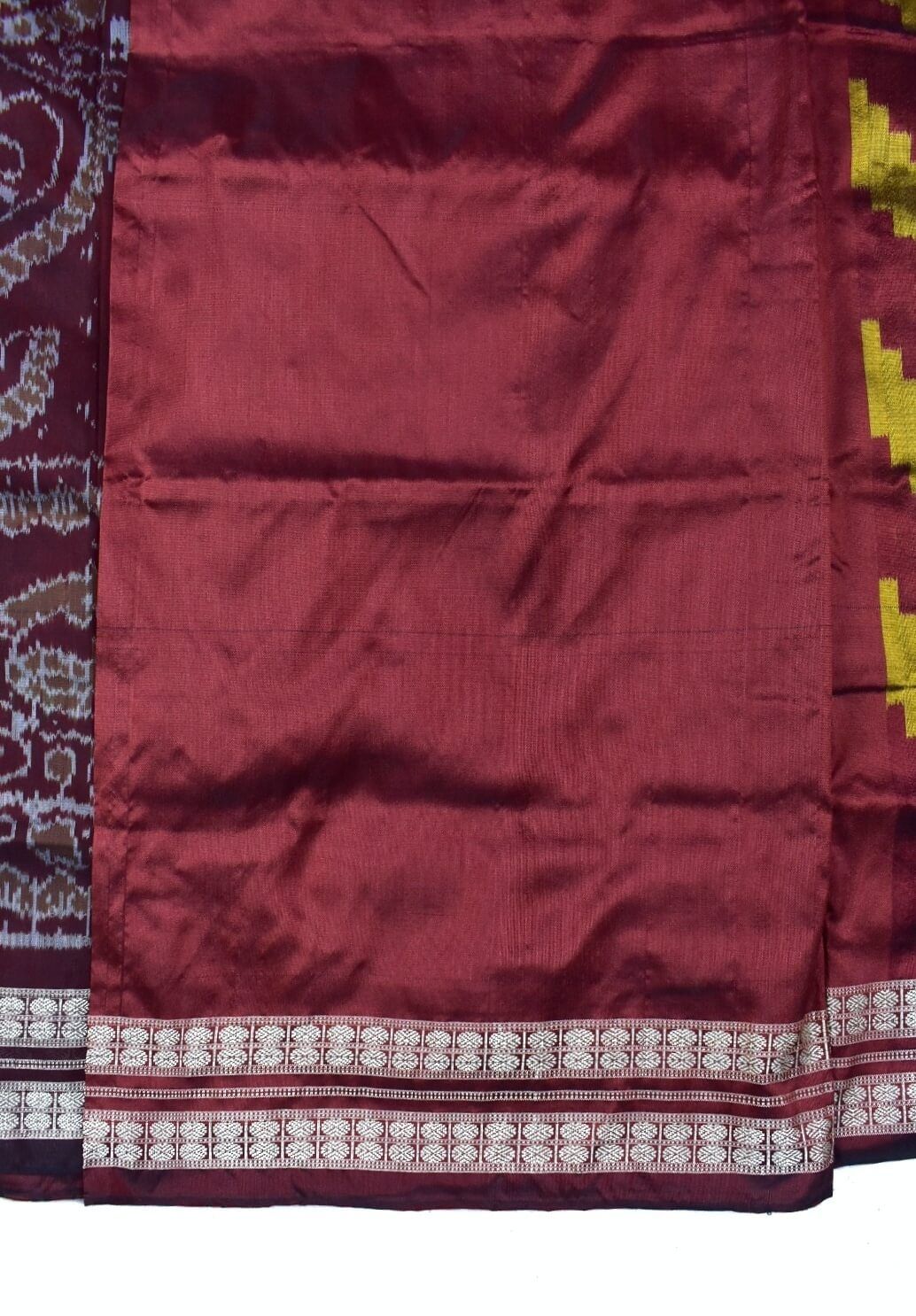 Be the first to review “Yellow-Maroon Combination Sambalpuri Handloom Bandha Silk Saree”