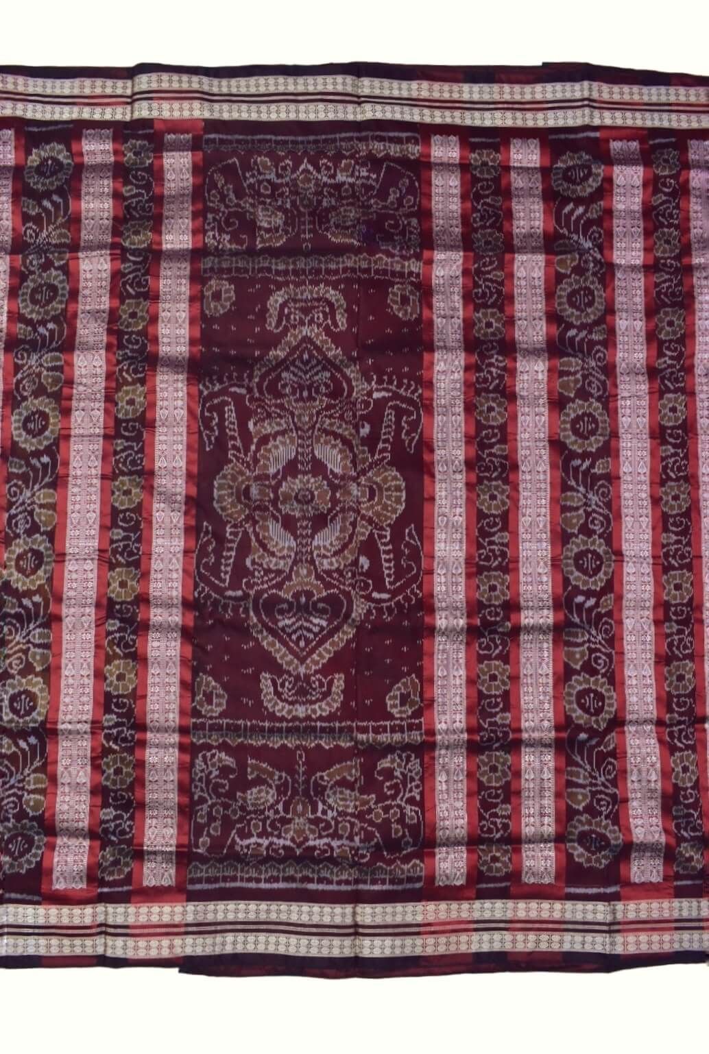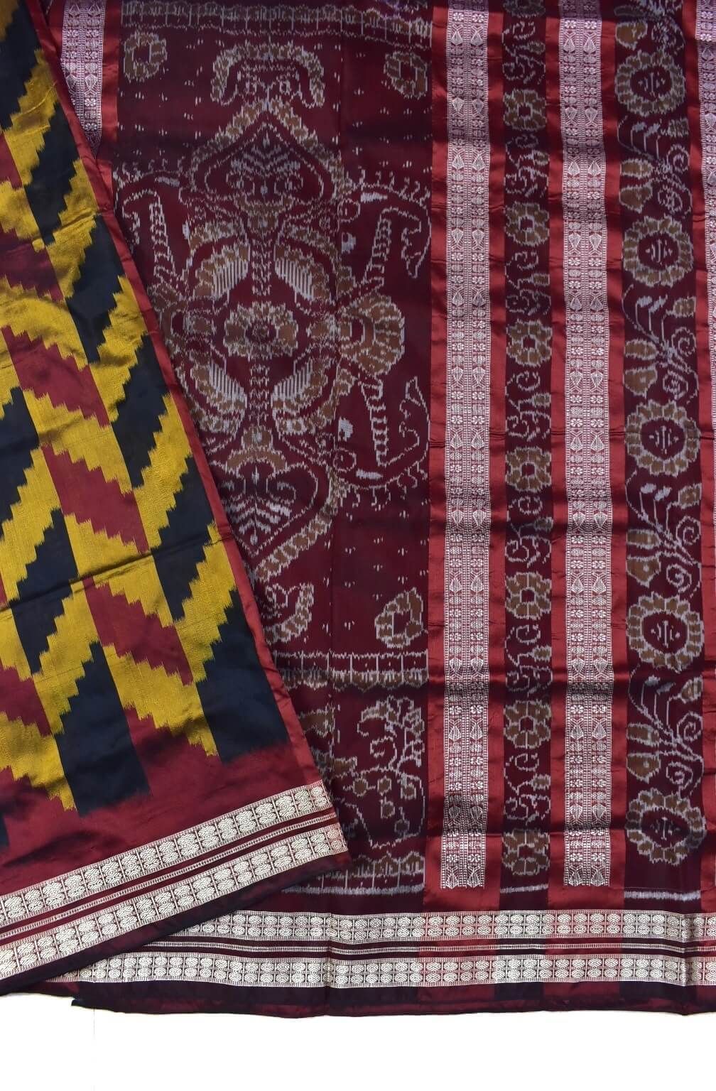 Yellow-Maroon Combination Sambalpuri Handloom Bandha Silk Saree